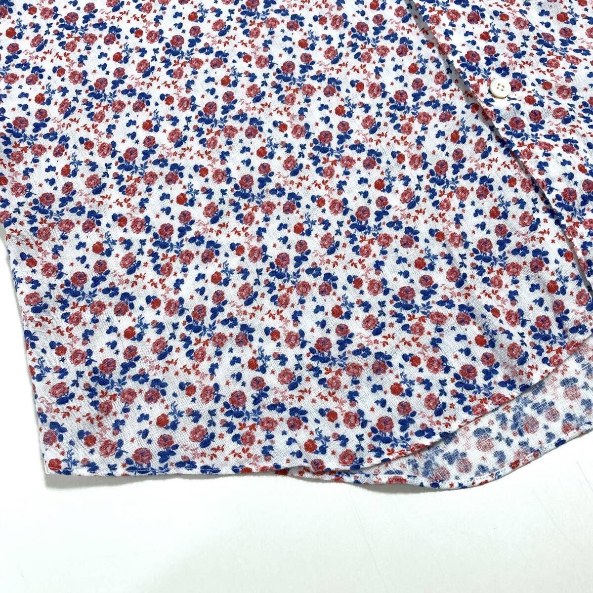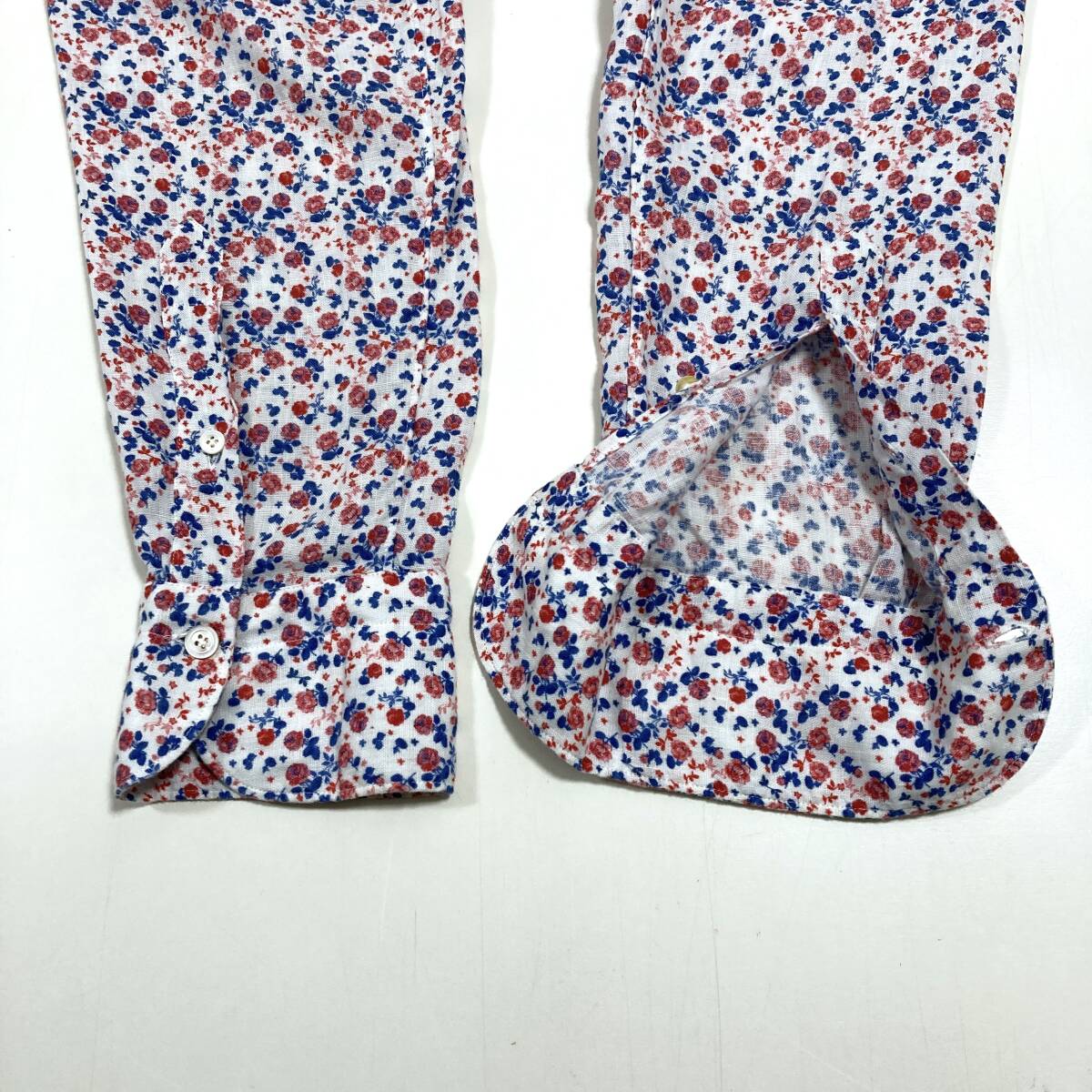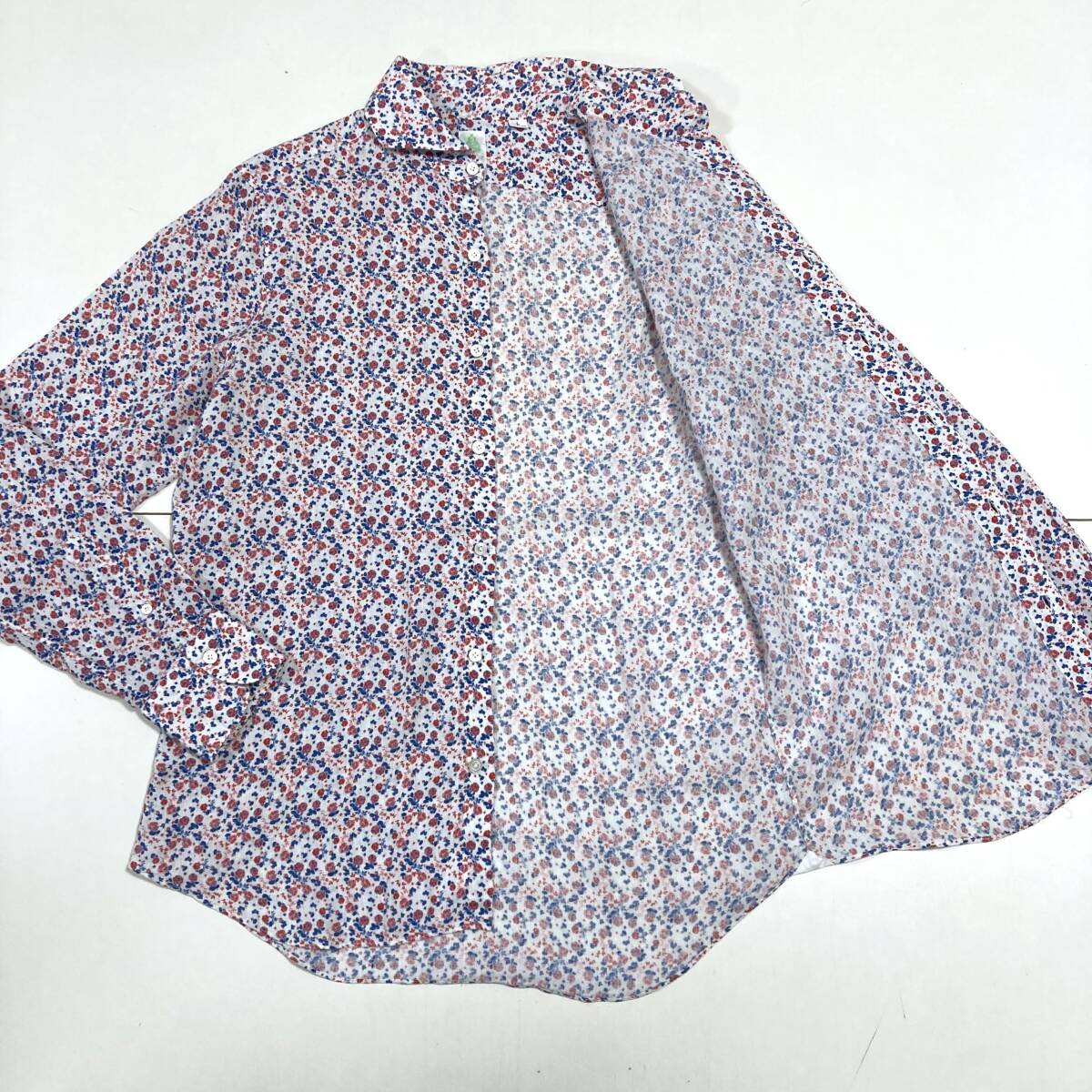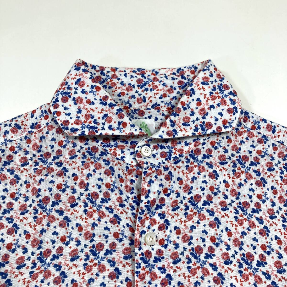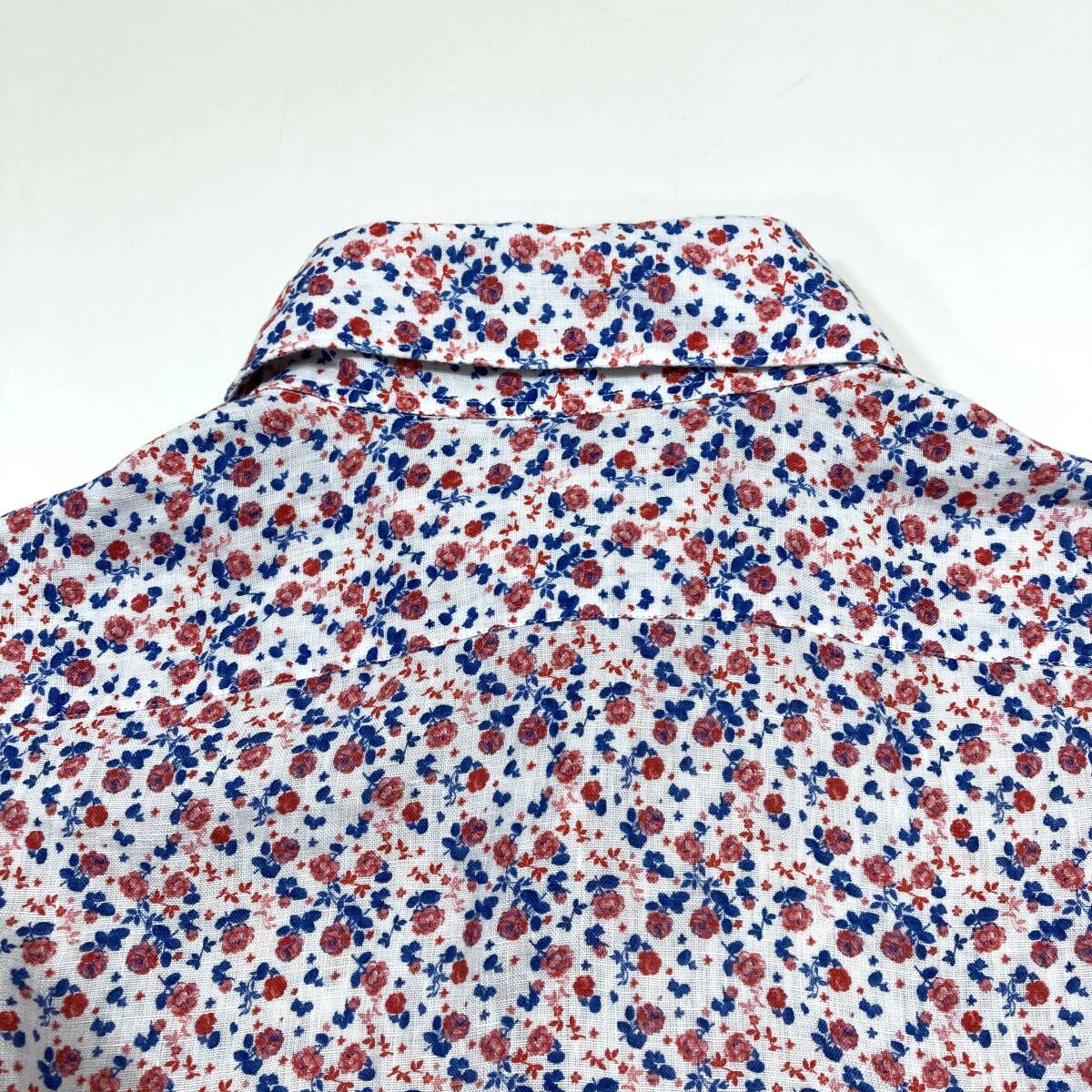 Finamore イタリア製 リネン 100% 花柄 カッタウェイ 長袖 シャツ ホワイト × レッド × ブルー