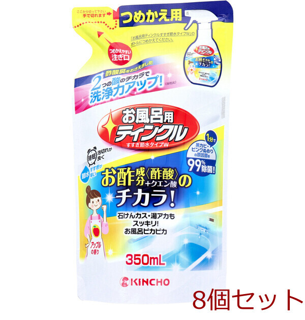 お酢成分「酢酸」+クエン酸のチカラ! 石けんカス・湯アカもスッキリ! お風呂ピカピカ。 酢酸臭をおさえました。 ・2つの酸のチカラで洗浄力アップ! (KINCHO比) ・すすぎ促進剤配合ですすぎが簡単。 (KINCHO従来品、非すすぎ節水タイプとの比較。) ・黒カビ汚れやピンクぬめりの原因菌を99%除菌出来ます。 (KINCHO試験結果。 すべての菌を除菌するわけではありません。) ・アップルの香り。 個装サイズ:115X210X62mm 個装重量:約384g 内容量:350mL 【発売元:大日本除虫菊株式会社(金鳥)】 【品名】 浴室用洗浄剤 【成分】 酢酸(1.5%)、クエン酸、界面活性剤(ポリオキシエチレンアルキルエーテル)、キレート剤、溶剤 【液性】 弱酸性 【用途】 浴そうや浴室の床、壁、洗面器、イス、蛇口 【使えないもの】 大理石や御影石等の石材、スチロール樹脂製品 ※液が付着した場合はすぐに水で洗い流すか水拭きする。 【ボトルへのつめかえ方】 (1)注ぎ口の切り方:ゆっくりと切ってください。 (2)注ぎ方:注ぎ口をさし込み、泡立たないようにゆっくり注いで下さい。 ※切る際には中身の飛び出しと切り口にご注意ください。 ※他の洗剤等とまぜないで下さい。 ※必ず「お風呂用ティンクル すすぎ節水タイプW」のボトル(400mL)につめかえて下さい。 ※あふれないように、液を使い切ってからつめかえて下さい。 ※つめかえた後はボトルの表示をよく読んでお使い下さい。 【使用量の目安】 1平方メートルに約8回噴射 【使用上の注意】 これは飲み物ではありません。 ・用途外に使わない。 ・効果が落ちるので塩素系の洗浄剤や漂白剤、ヌメリ取り剤とは併用しない。 ・使用の時は炊事用等の手袋を着用する。 ・換気をよくして使う。 ・人に向けてスプレーしない。 ・目より高い場所で使用する時はスポンジや布につけて洗う。 ・一部のプラスチックの浴そう(人造大理石を含む)や、床、壁・塗装面にはシミになるものがあるので、目立たない場所で試してから使用する。 液をかけて10分以上放置しない。 ・使用後は手を水でよく洗う。 ・頑固な水アカ汚れは、乾燥後白膜が現れて取り除けない場合があります。 これは水道水などに含まれるケイ酸が蓄積したもので、本品では落としきれません。 液体タイプのクレンザー等でこすり取ってください。 ・子供の手が届く所に置かない。 【応急処置】 ・目に入った時はこすらずにすぐ水で充分洗い流す。 ・飲み込んだ時は水を飲ませる等の処置をする。 ・皮膚についた時は水で充分洗い流す。 ・異常がある時は商品を持参し、医師に相談する。 注意事項 ※予告なく成分・パッケージが変更になることがございます。 予めご了承ください。 *予告なく成分・パッケージが変更になることがございます。予めご了承ください *ダンボールを使用して発送する場合には、入数以下の個数の場合、 中古ダンボールを使用する場合があり、ご注文の商品とは異なるダンボールになる場合があります。 あらかじめ、ご了承ください。 |