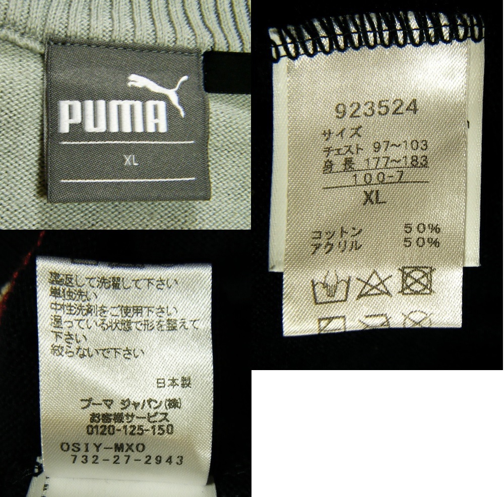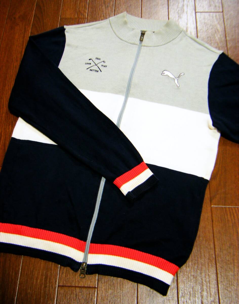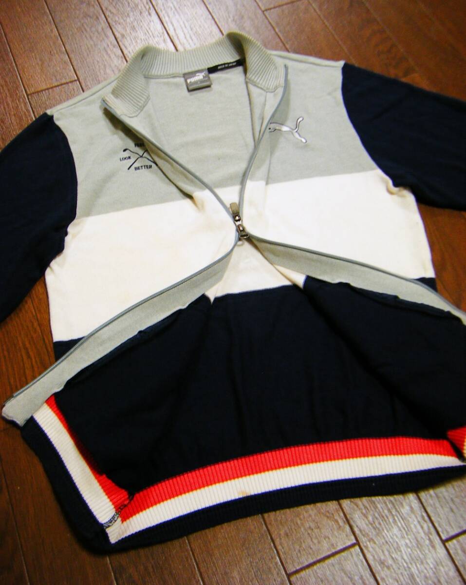超伸縮〇PUMA GOLF ニット ブルゾン XL やや薄手 刺しゅうロゴ 紺.灰.白.赤