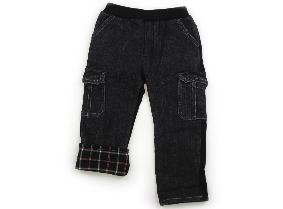 前面はデニム地で、背面はカットソー地で、ウエストは総ゴムです。カットソー地に毛羽立ち・毛玉あり。