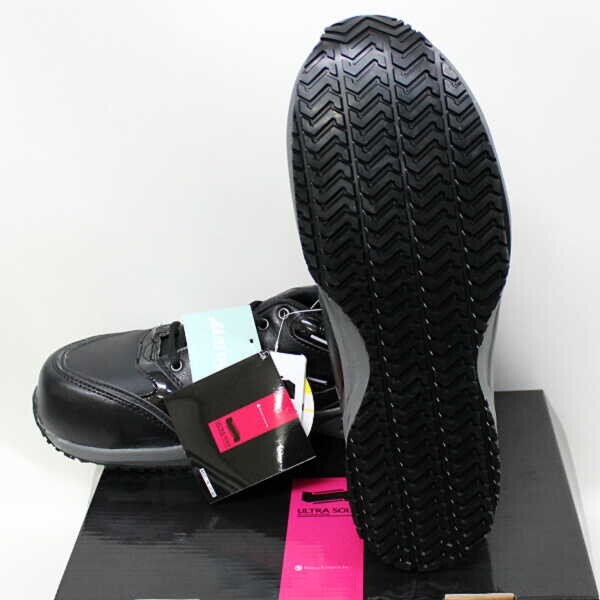 水や油膜がある床面でも、縦方向だけでなく横滑りにも強いグリップ力を発揮し、作業中の不意な転倒を防ぎます。