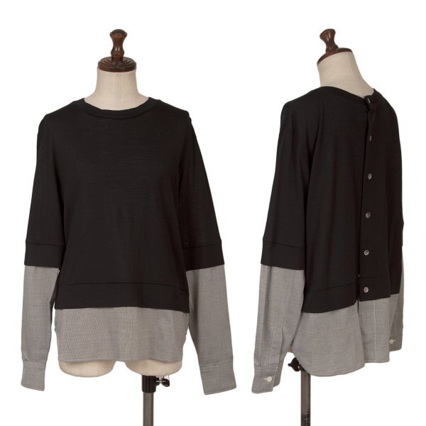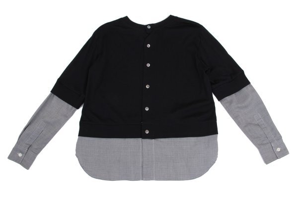 | ズッカzucca シャツ切替デザイン後ろ開きニットカーディガン 黒グレーM |