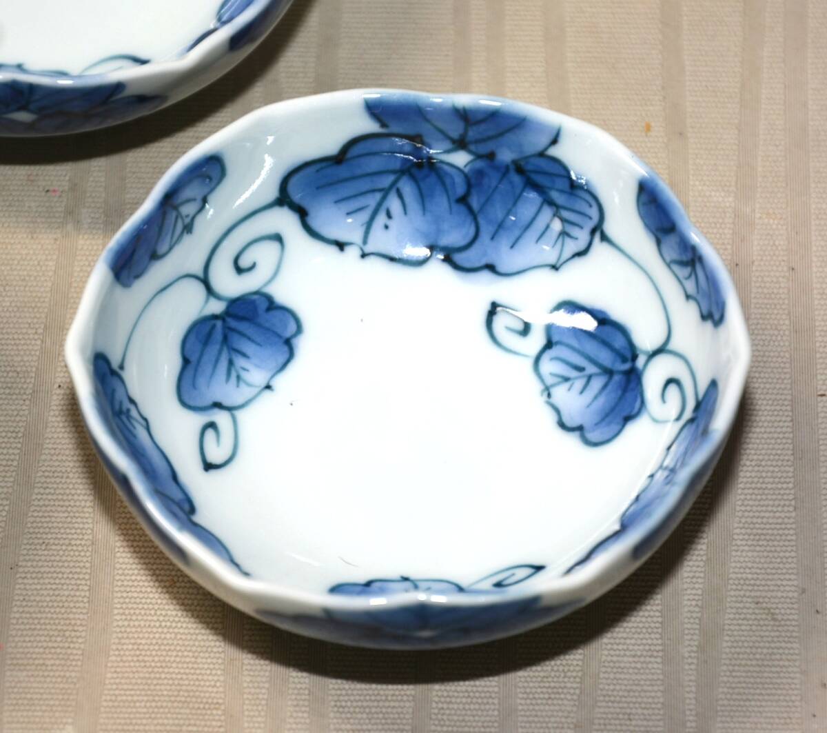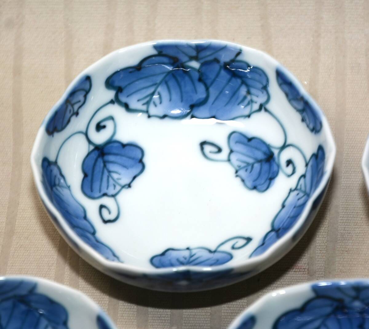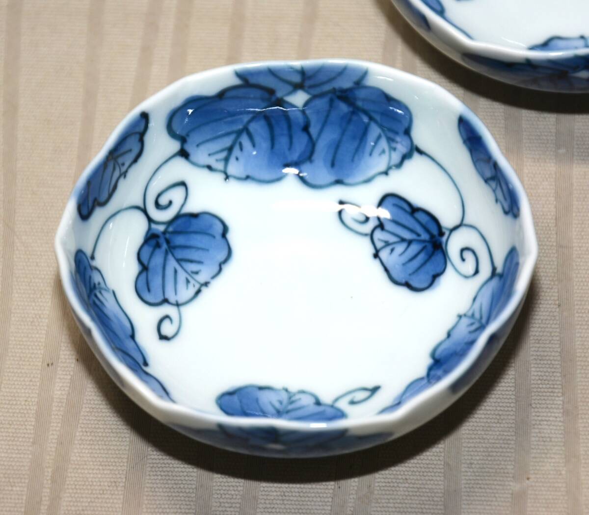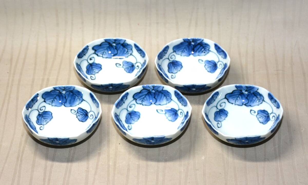 28◆初荷です ◆平戸焼 三川内焼 啓祥窯 染付蔦絵豆皿 5客 7.8cm ◆可愛い絵付けです 高級和食器 懐石 千代口 千代久