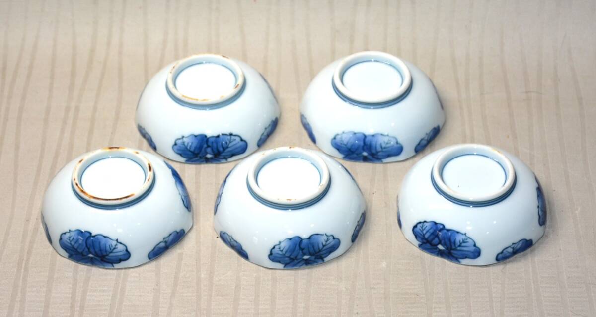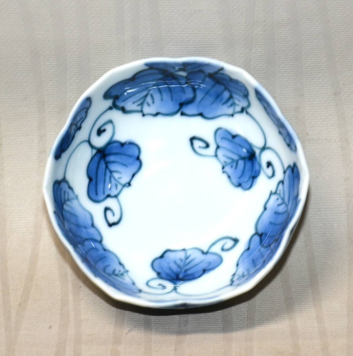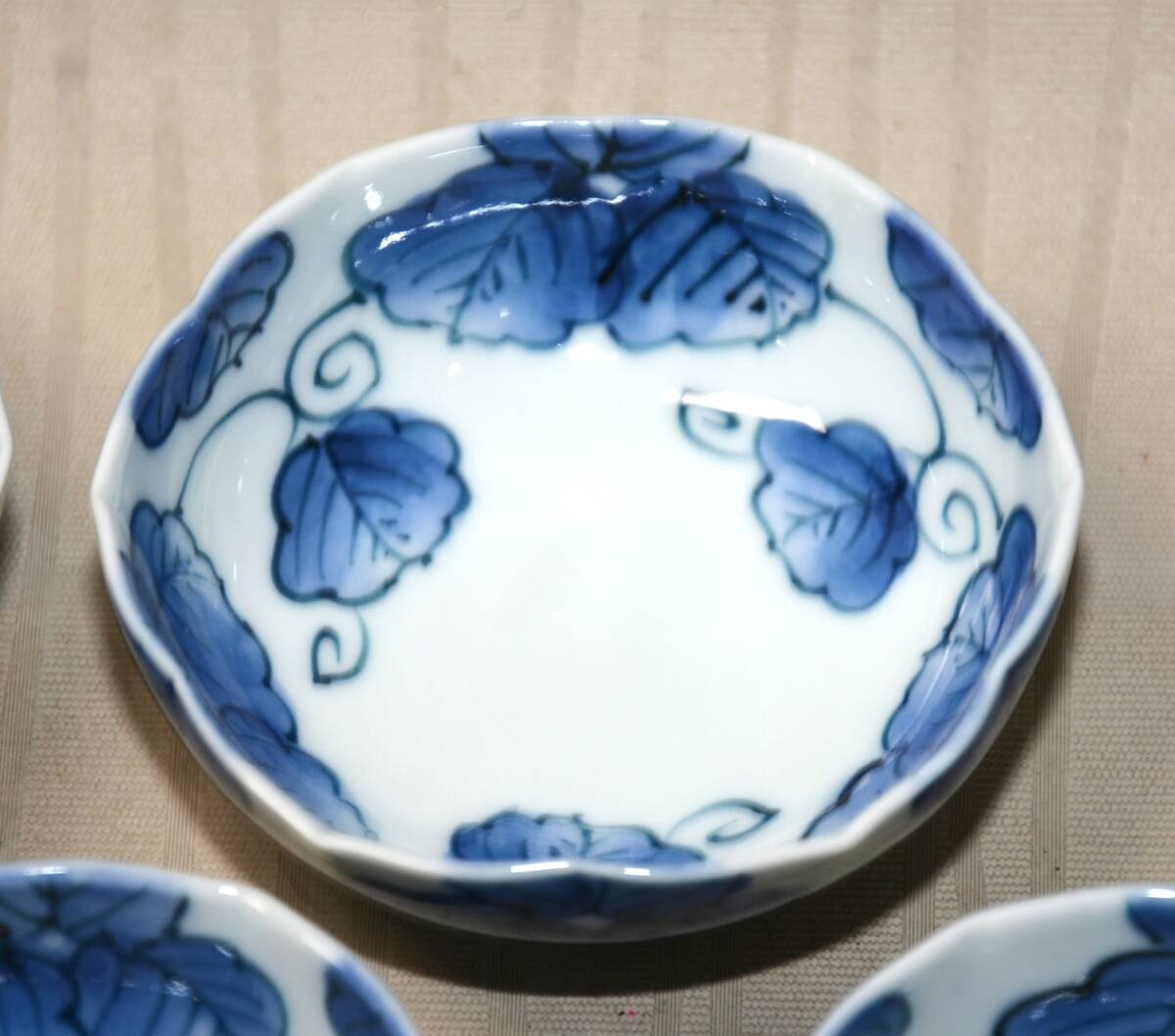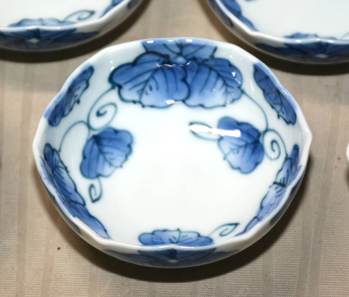 28◆初荷です ◆平戸焼 三川内焼 啓祥窯 染付蔦絵豆皿 5客 7.8cm ◆可愛い絵付けです 高級和食器 懐石 千代口 千代久