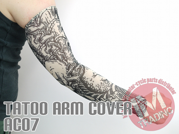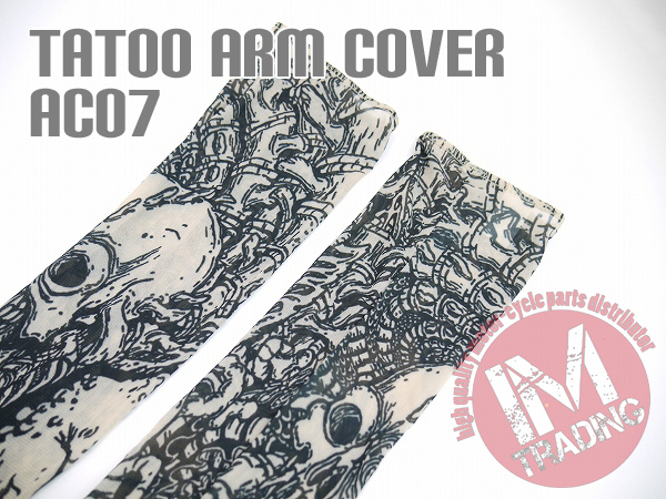 煽り対策 ゆうパケット対応 タトゥーアームカバー 2枚セット NO.07 入れ墨 アームスリーブ スカル 骸骨 しゃれこうべ スケルトン
