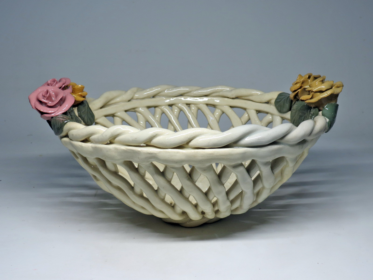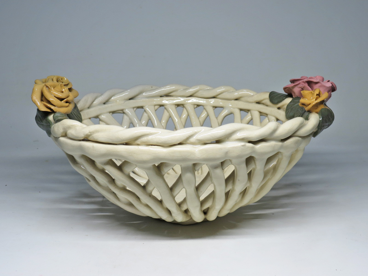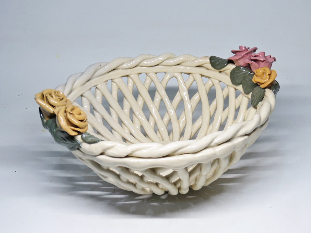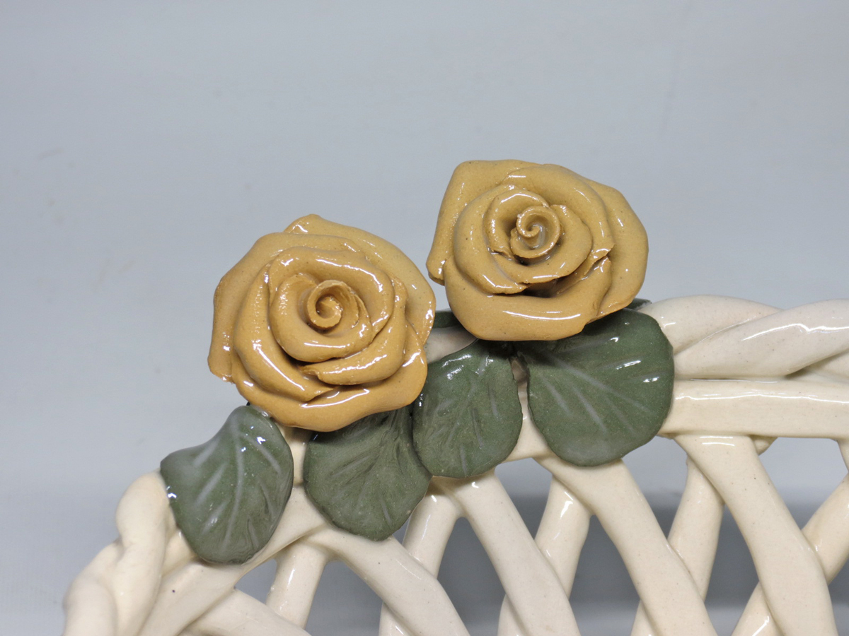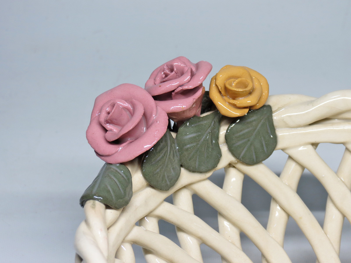 ■ 格子状 陶器 バスケット バラ装飾 かご インテリア■AO200825048 | |||