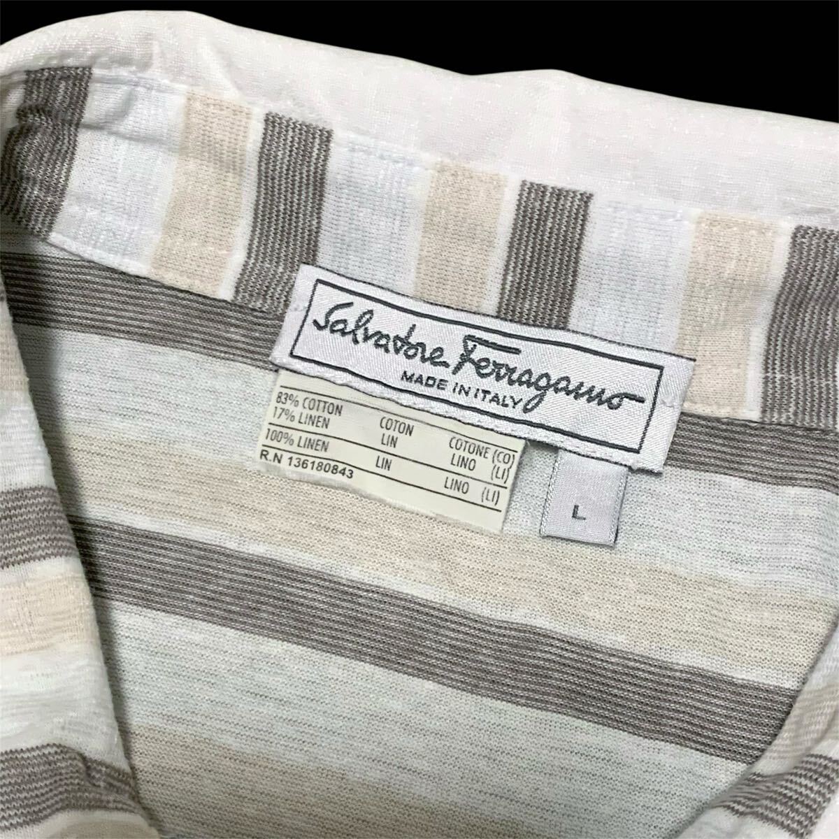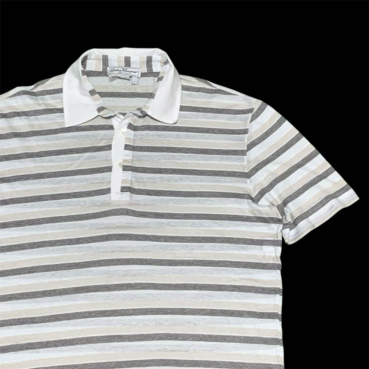 title: 送料込!美品★Salvatore Ferragamo サルヴァトーレフェラガモ★コットンリネン ボーダー半袖ポロシャツL★