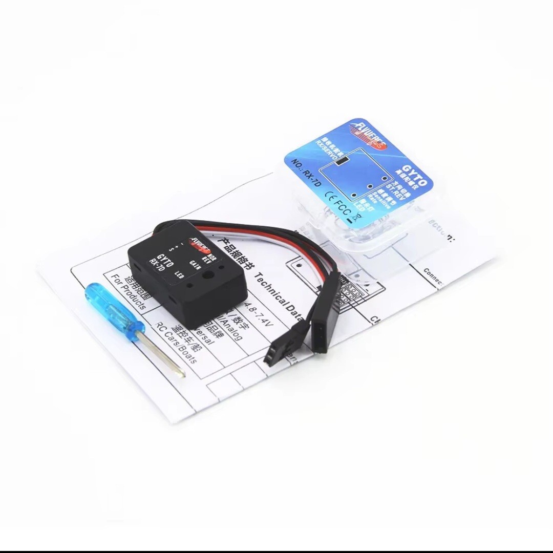 取り付け方法はご自身で調べて下さい。普通のジャイロと同じで、サーボと受信機の間に割り込ませて使う物です