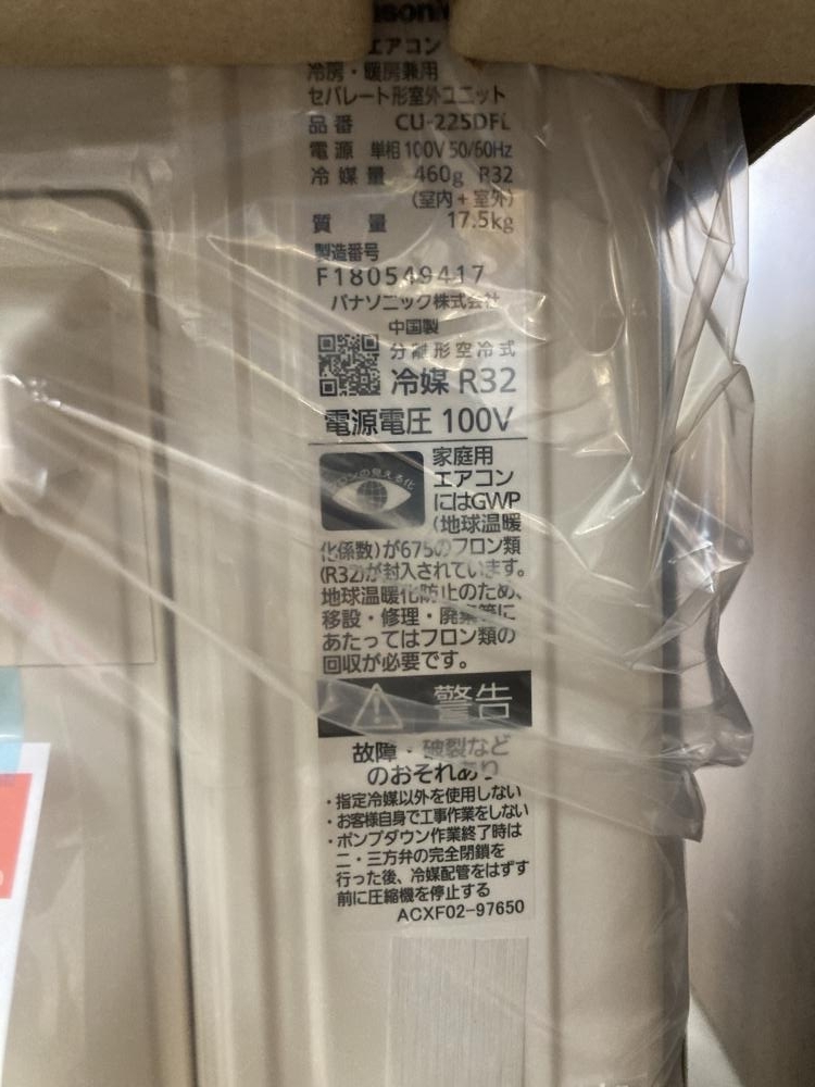 Panasonic ■商品名 6畳用ルームエアコン+室外機 ■型番 CS-225DFL-W+CU-225DFL |