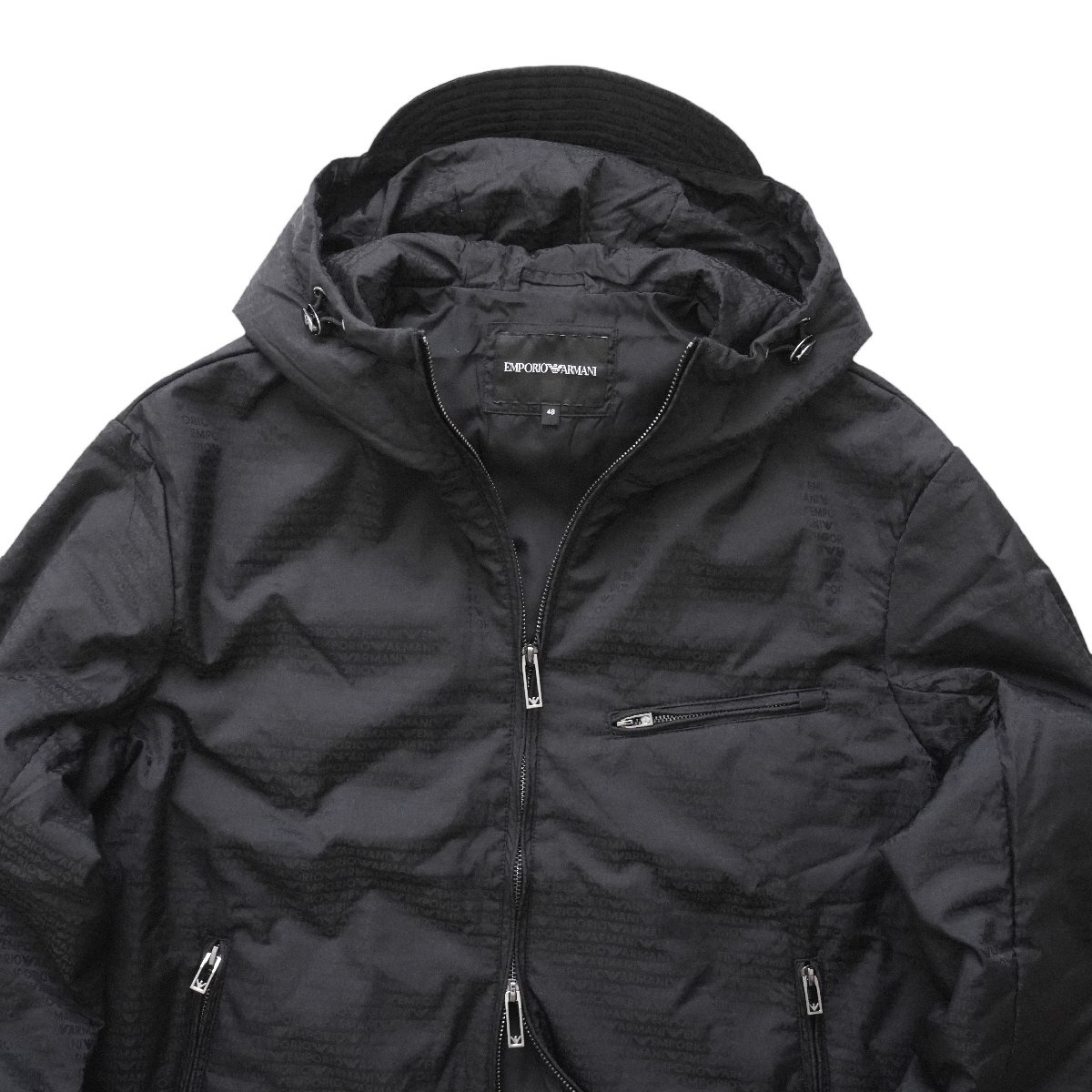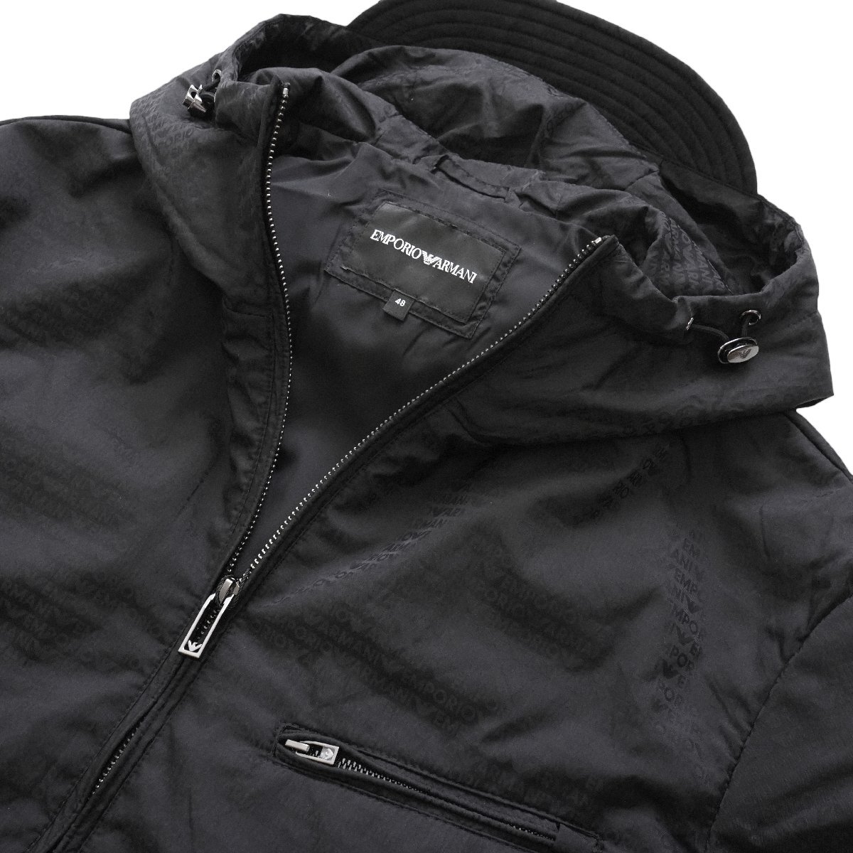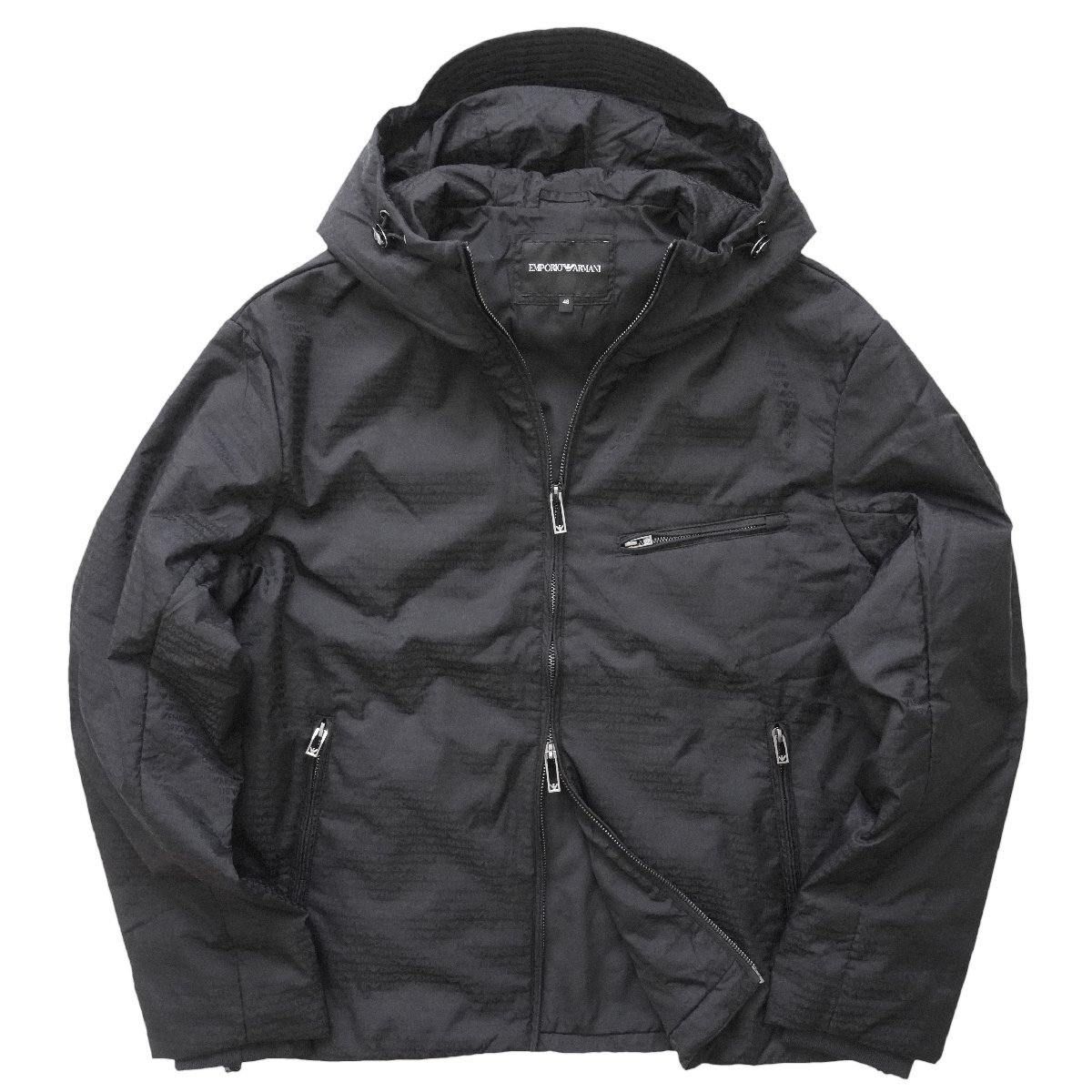 2025◆新品◆エンポリオアルマーニ◆アクティブ&お洒落 EMPORIO ARMANI ロゴグラム 軽量 ナイロン ブルゾン 50 黒◆中綿入り パーカー