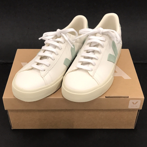 | VEJA CAMPO サイズ 25cm レザー ローカット スニーカー レディース ホワイト×ミントカラー系 保存箱付き シューズ 靴 |