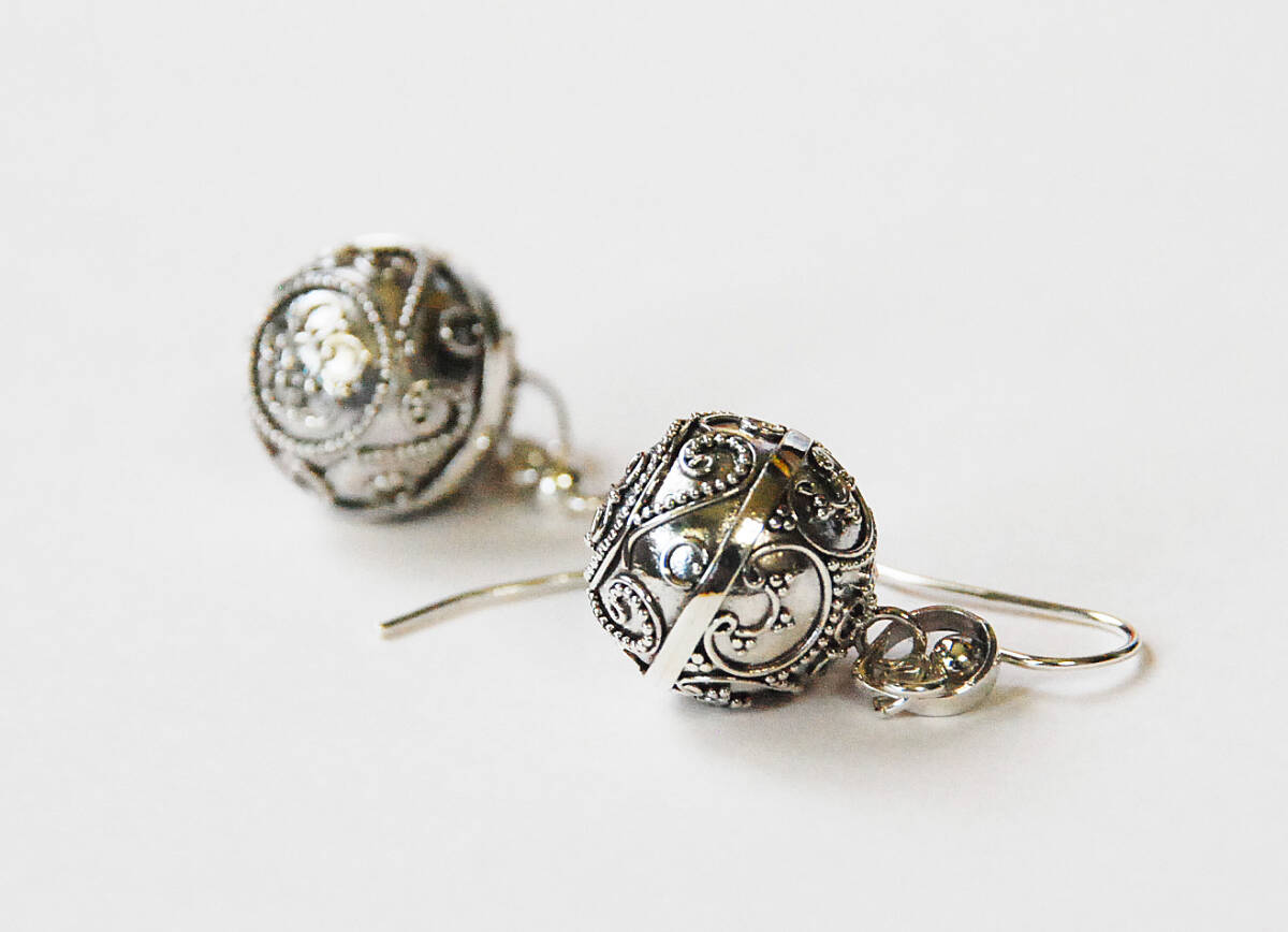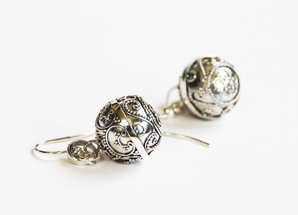 ガムランとは、インドネシアの伝統楽器「ガムラン」の音を再現したもの。 神聖なものである「月」を模した球体の中に、音を奏でるパーツが包まれています。 癒しの音を奏でるヒーリングアイテムです。シルバーピアスはシルバー925を使用しています。シルバー925の引っ掛けるタイプのピアスパーツです。人生においてこのイヤリングは良い音を奏でて幸運を呼び込みそうです。魔除けにもなってくれるという言い伝えもあります……期待を込めて~