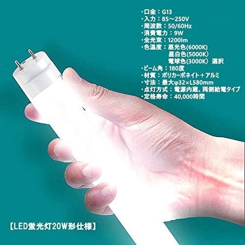 ■【LED蛍光灯2W形仕様】・口金:G13・入力:85〜25V・周波数:5/6Hz・消費電力:9W・全光束:1lm・色温度:昼光色(K)昼白色(K)電球色(K)