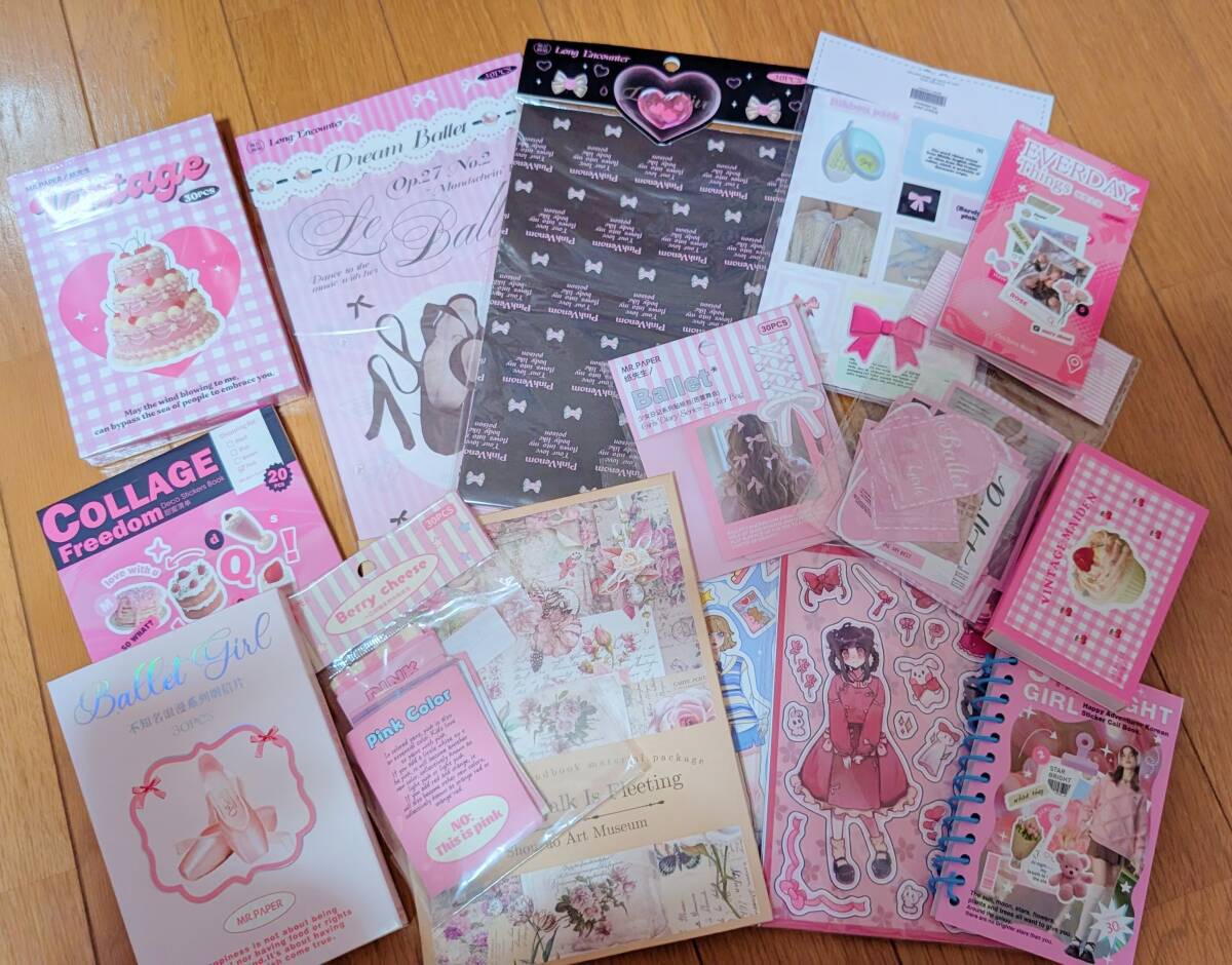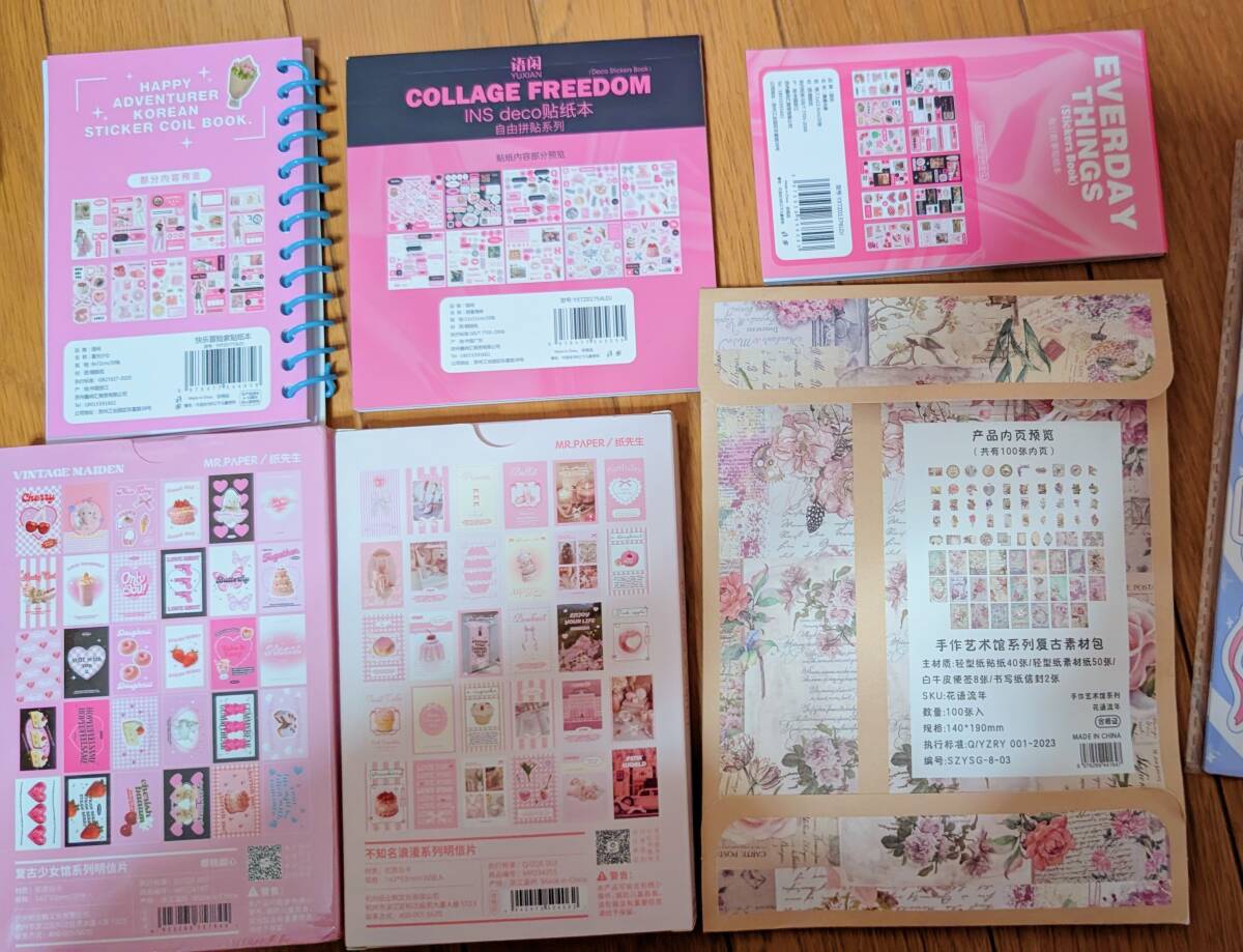 - セット内容: ステッカー、ノート、コラージュ用素材、シールなど