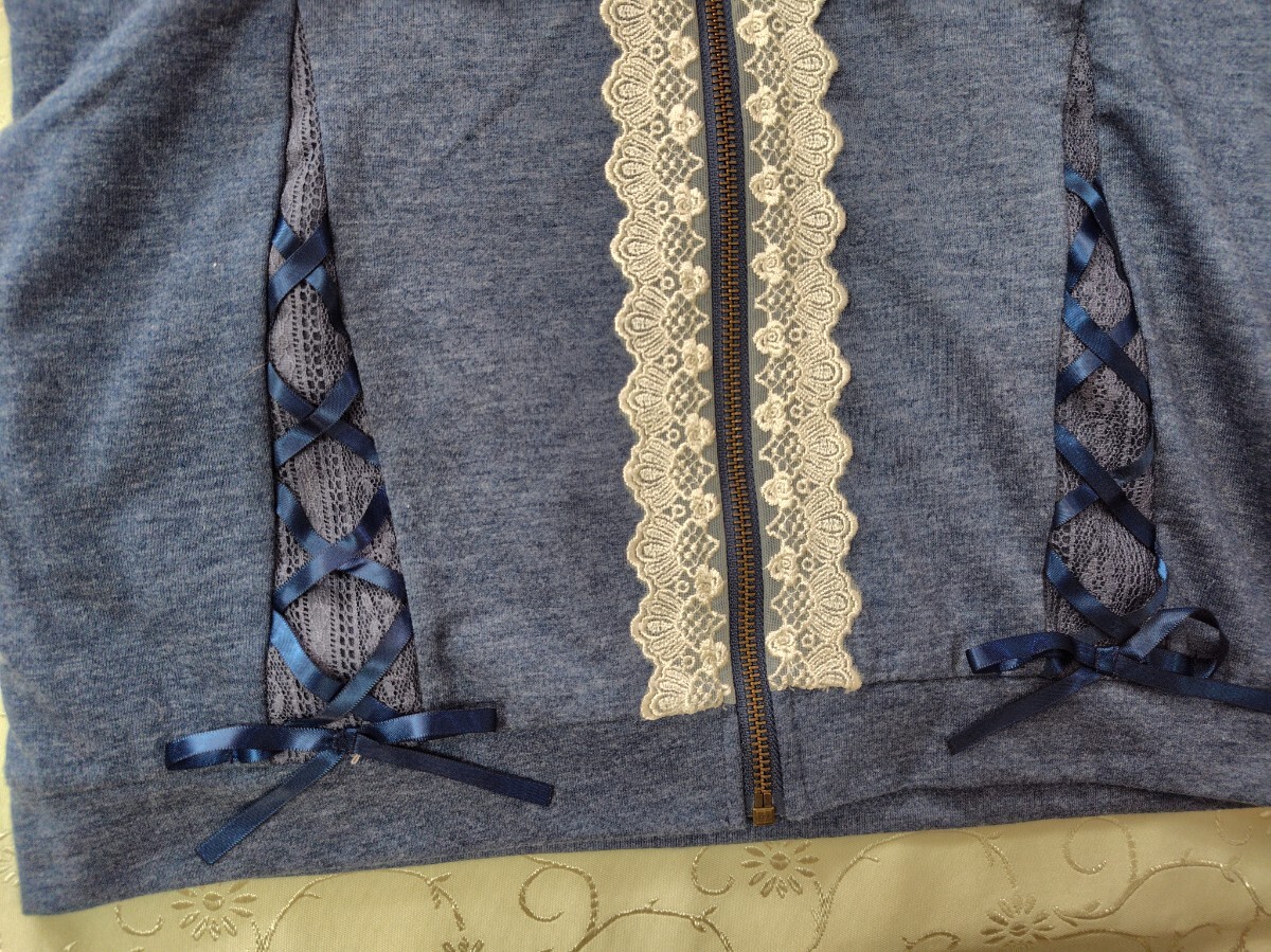アクシーズファム レースとリボン使いのパーカー ネイビー