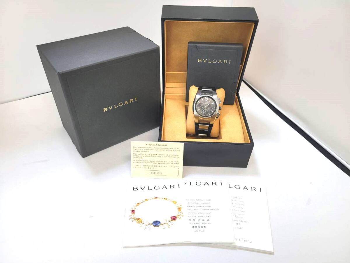 【良品】ブルガリ エルゴン クロノグラフ 自動巻き メンズ /BVLGARI/Ergon/ブラック/カーボン