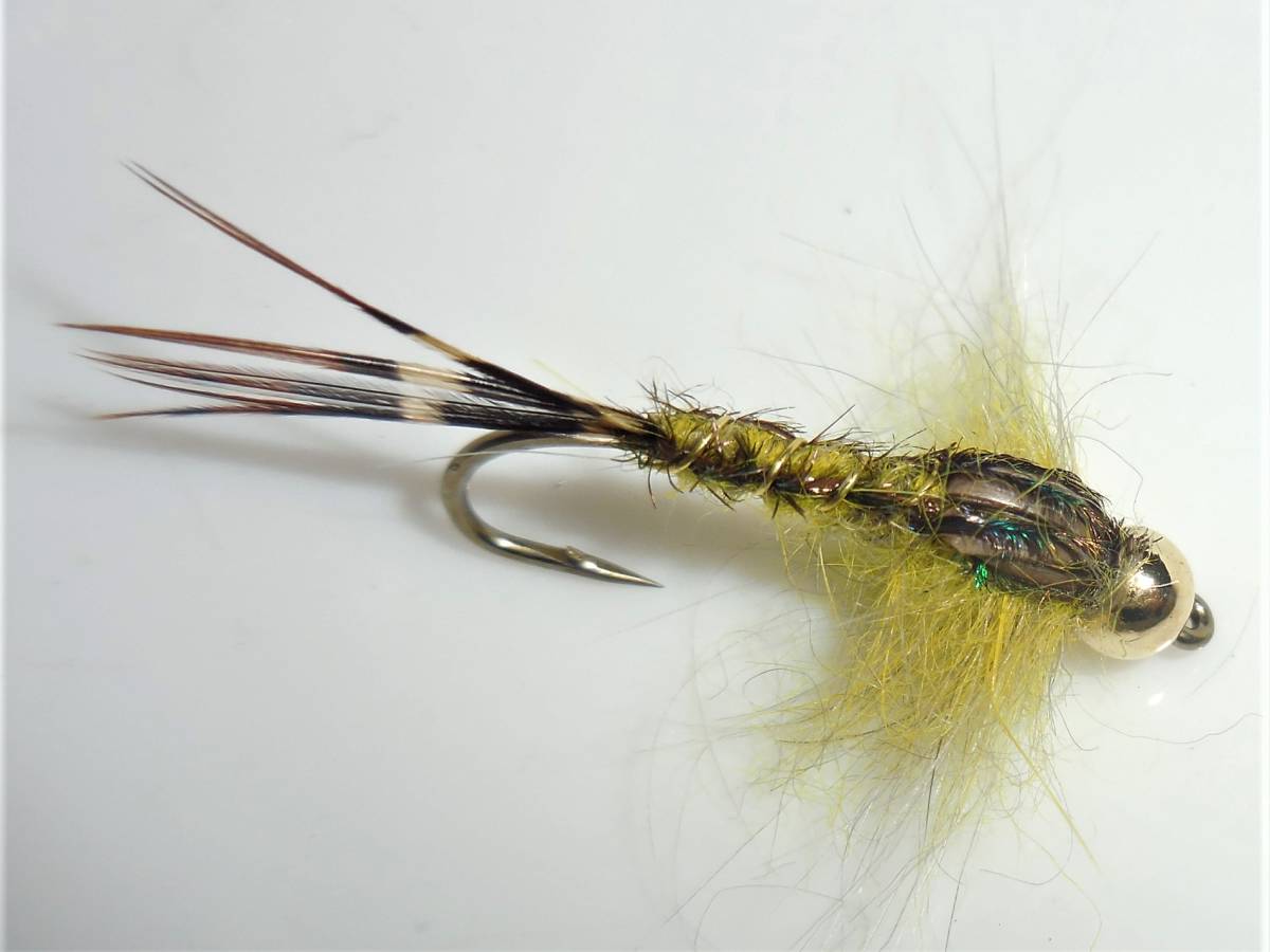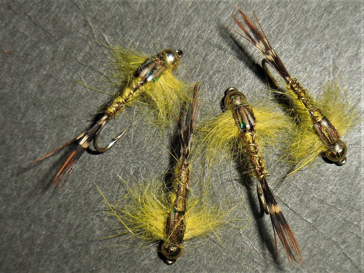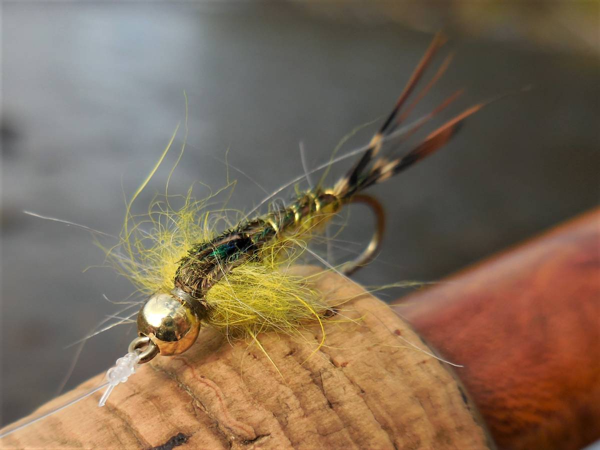 渓流で多く見られる大型のカワゲラは、幼虫期間が長くシーズン通して捕食される水生昆虫の代表でもあります。茶色系の水生昆虫が多い中、スレた時など沈めるニンフでも色違いを流すと喰いつくことも多いです。ウエイト入りで季節や天候にも左右されないニンフは、多くの釣り場で重宝します。