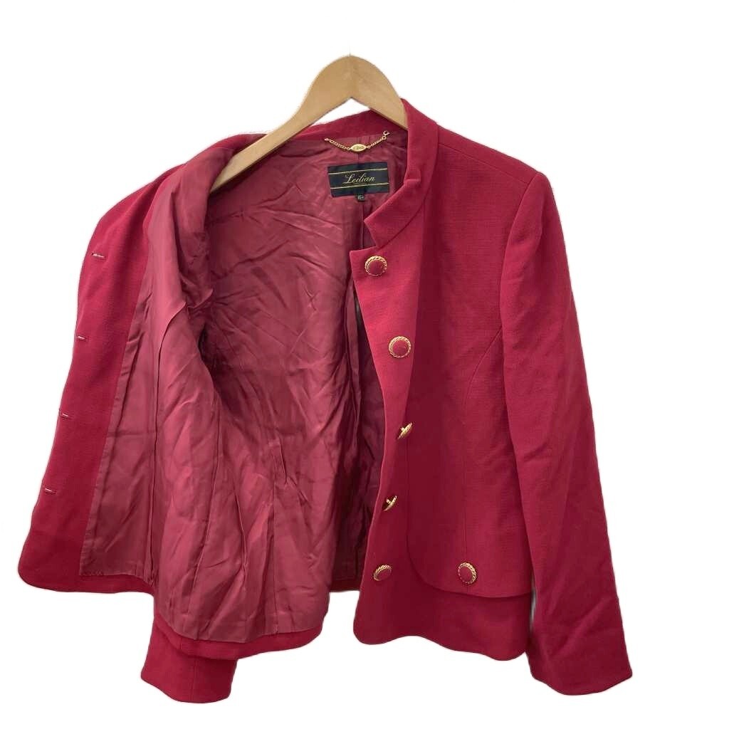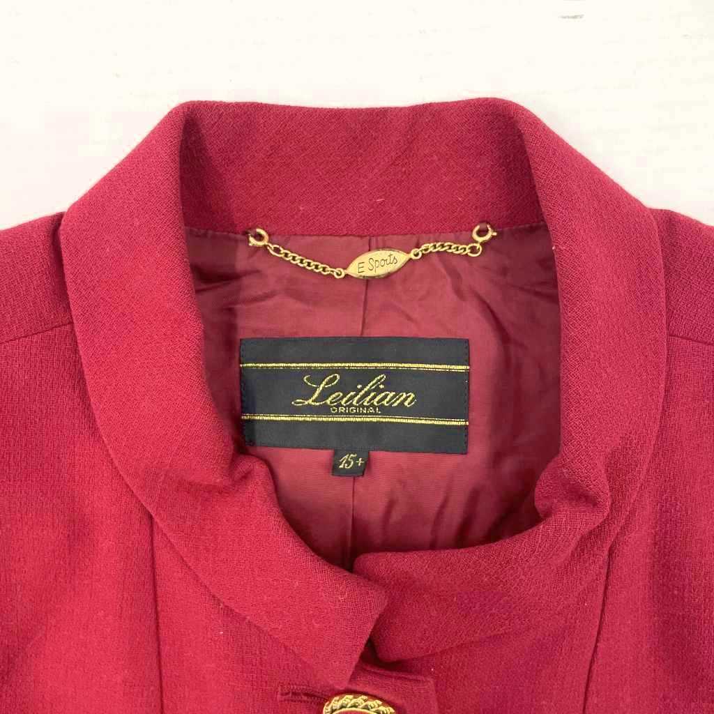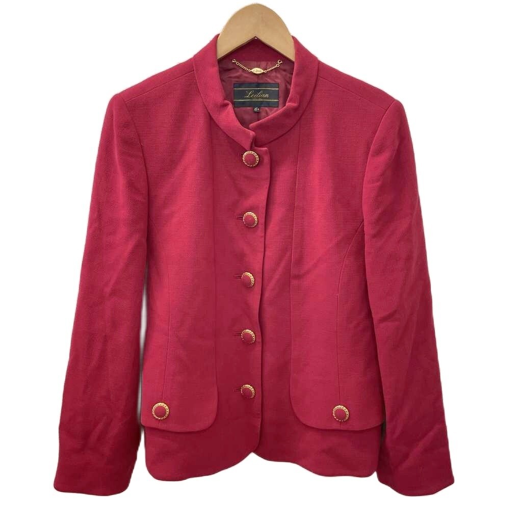 レリアン Leilian スタンドカラージャケット マオカラー 金ボタン 大きいサイズ 15+ 3L 赤 レッド ゴールドカラー レディース