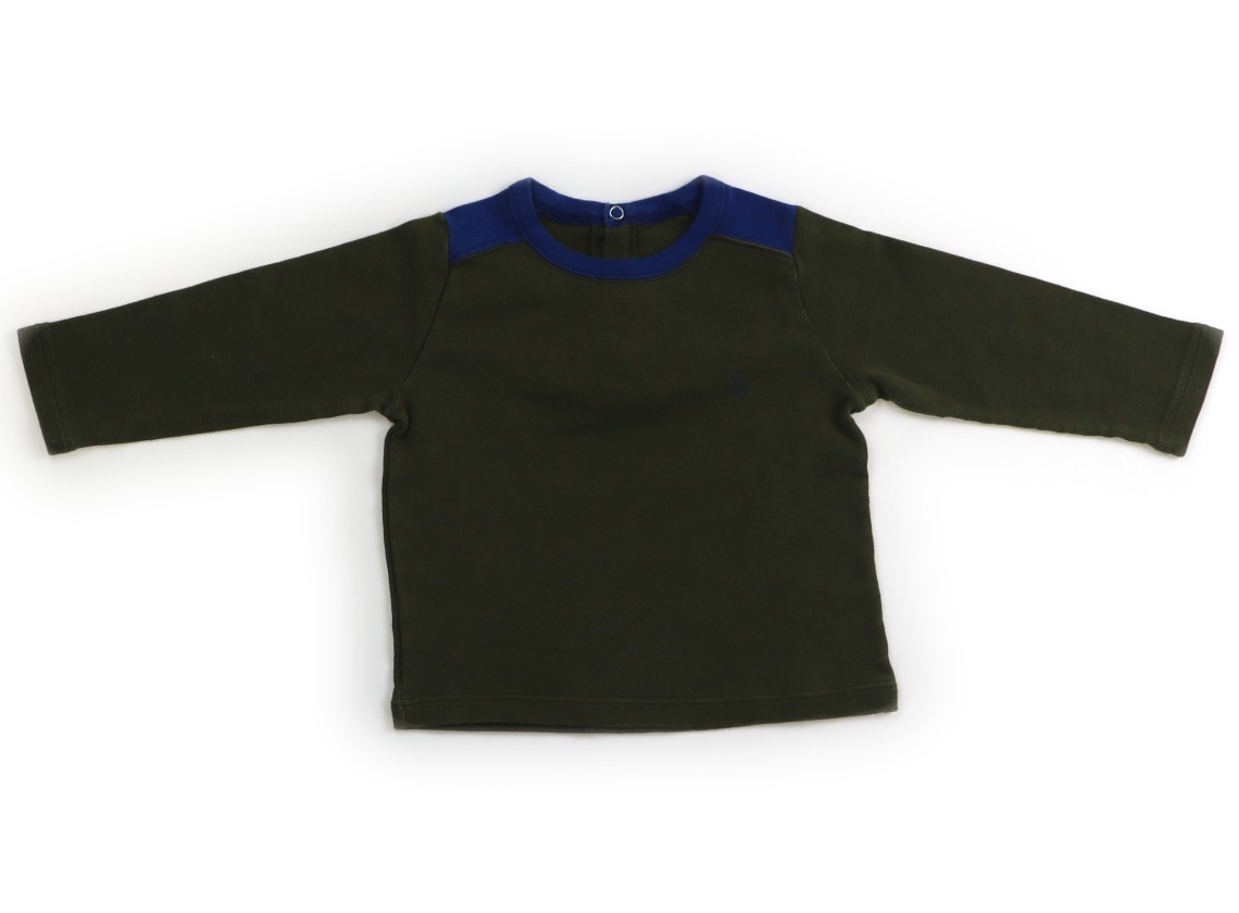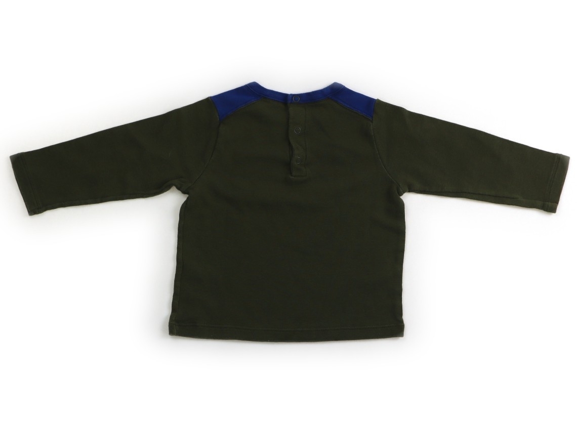 カットソー地。実際のサイズ表記は12m/74cmです。全体に毛羽立ちがあります。端にヨレとやや色褪せあり。後ろボタンあり。