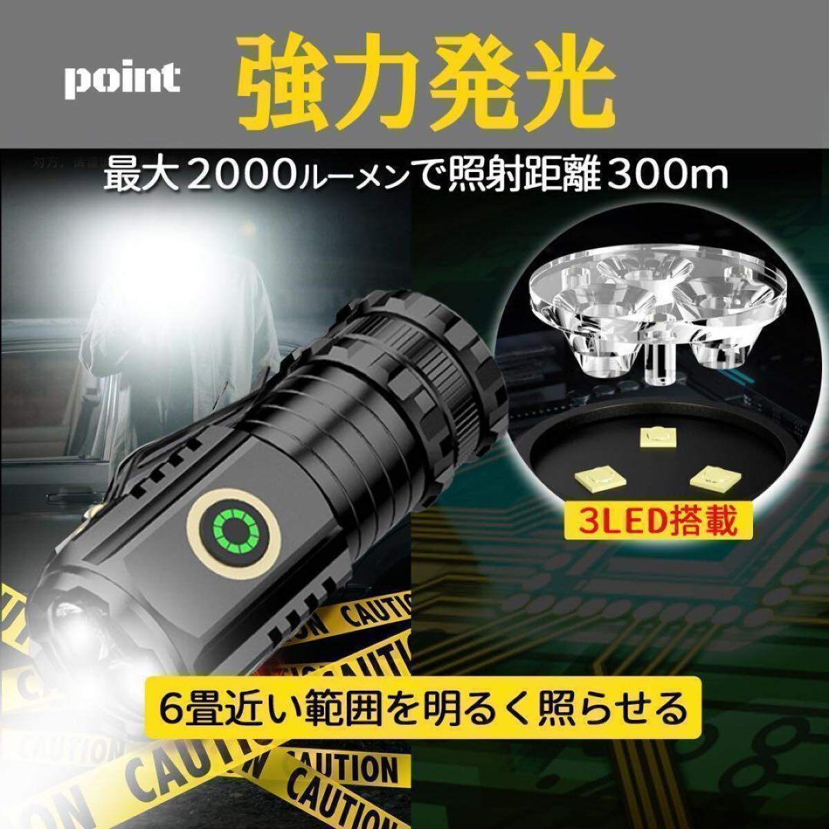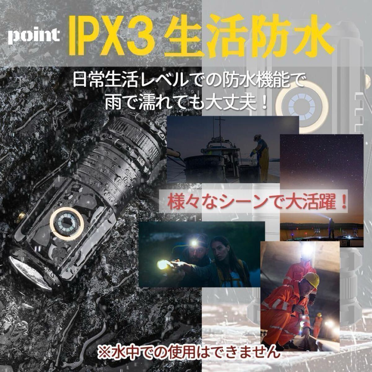- 最大2000LMの明るさ、最遠照射距離約300m