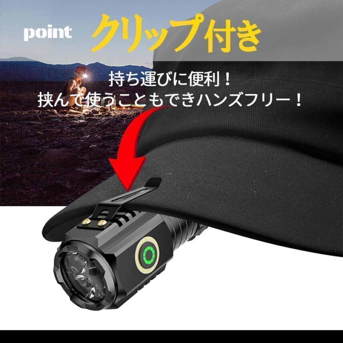 磁石搭載で両手が自由自在!クリップ付きなので、キャップ等に取り付けるだけでワンタッチでヘッドライトとしても使えます。さらにUSB充電式なので、充電の心配も不要!