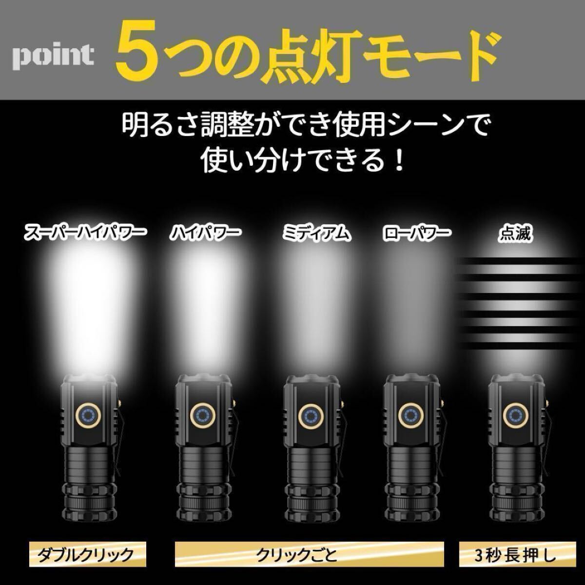 - 5種類の点灯モード(超高輝度モード、高輝度モード、中輝度モード、低輝度モード、SOSモード)