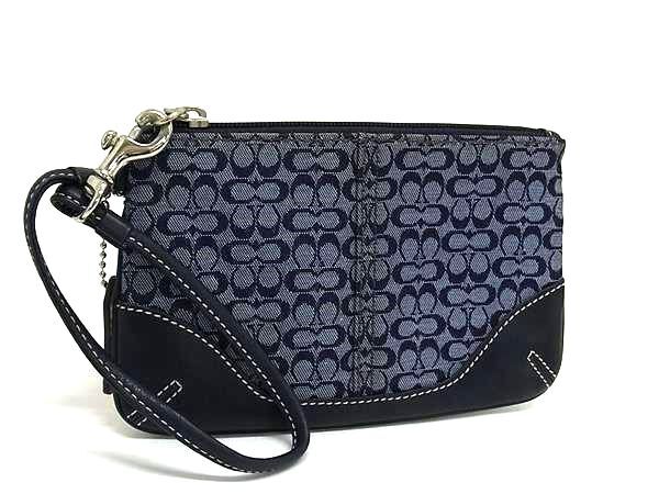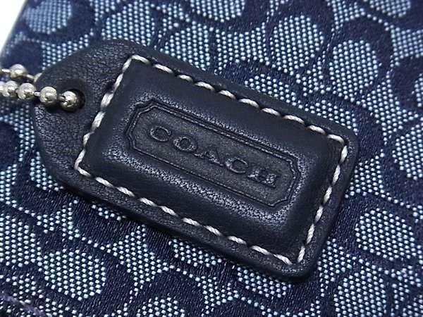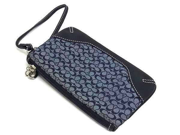 ■美品■ COACH コーチ ミニシグネチャー キャンバス×レザー マルチポーチ マルチケース 小物入れ レディース ネイビー系 DI0553