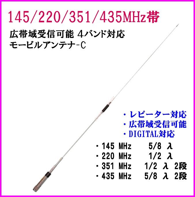 351MHz帯 デジタル簡易無線 4バンド 広帯域 受信 モービルアンテナ-C 新品 過激飛びMAX ♪ VHF UHF アマチュア無線 基台 車載型 無線機 に