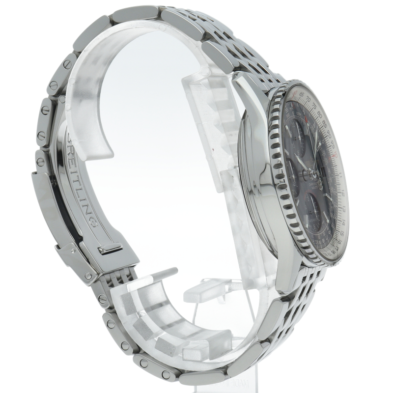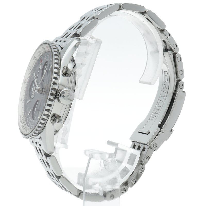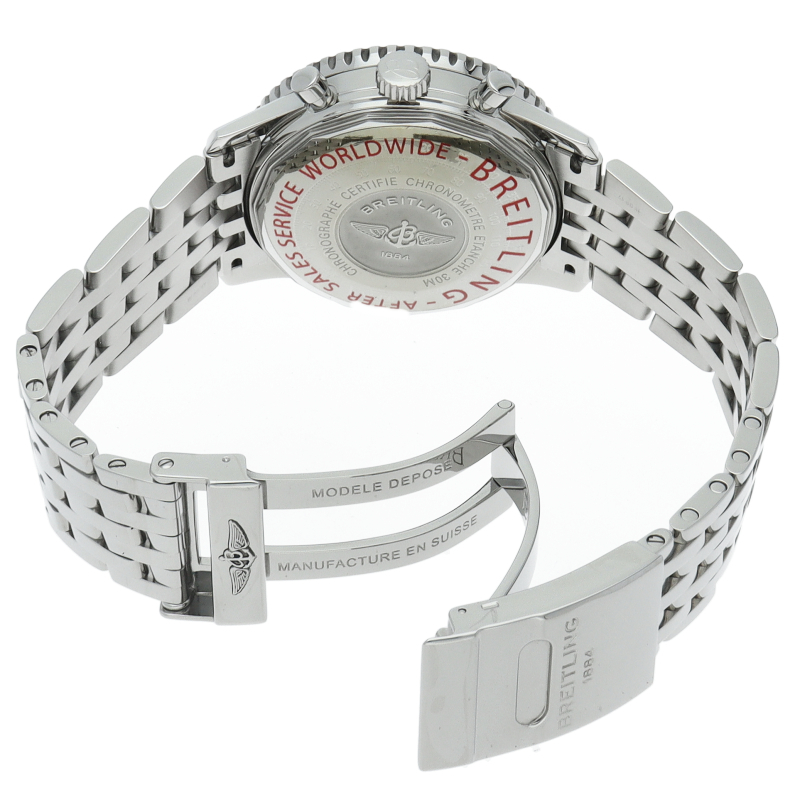 商品説明:1952年発表以来、「腕に装備する計器」として多くのパイロットに愛用され、現在も時計ファンを魅了し続けるブライトリングフラッグシップ・モデル「ナビタイマー」。オールド ナビタイマーに通ずるダイヤルデザイン「縦三つ目」のインダイヤル配置、COSC公認クロノメーターブライトリング13を搭載しております。A13324/A1332412/C942。