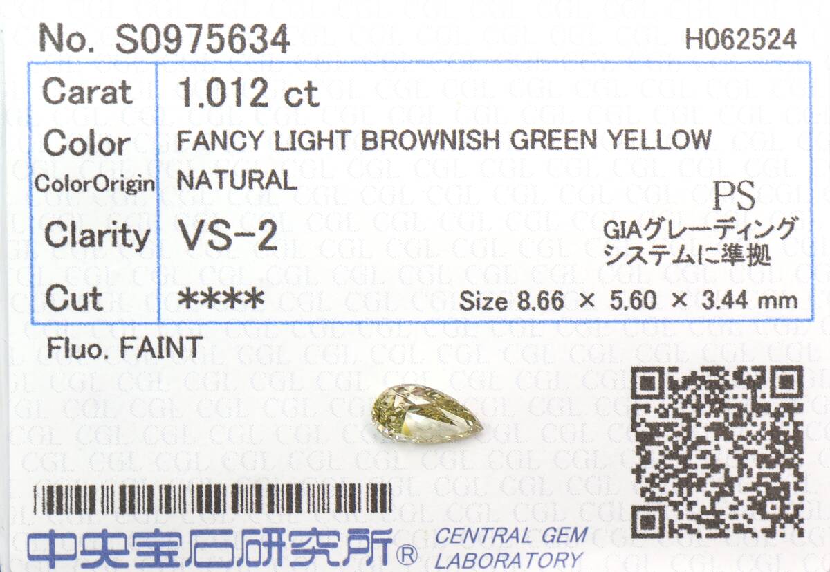 1.012ct!VS2!天然ダイヤ FANCY LIGHT BROWNISH GREEN YELLOW(ナチュラルカラー)PS