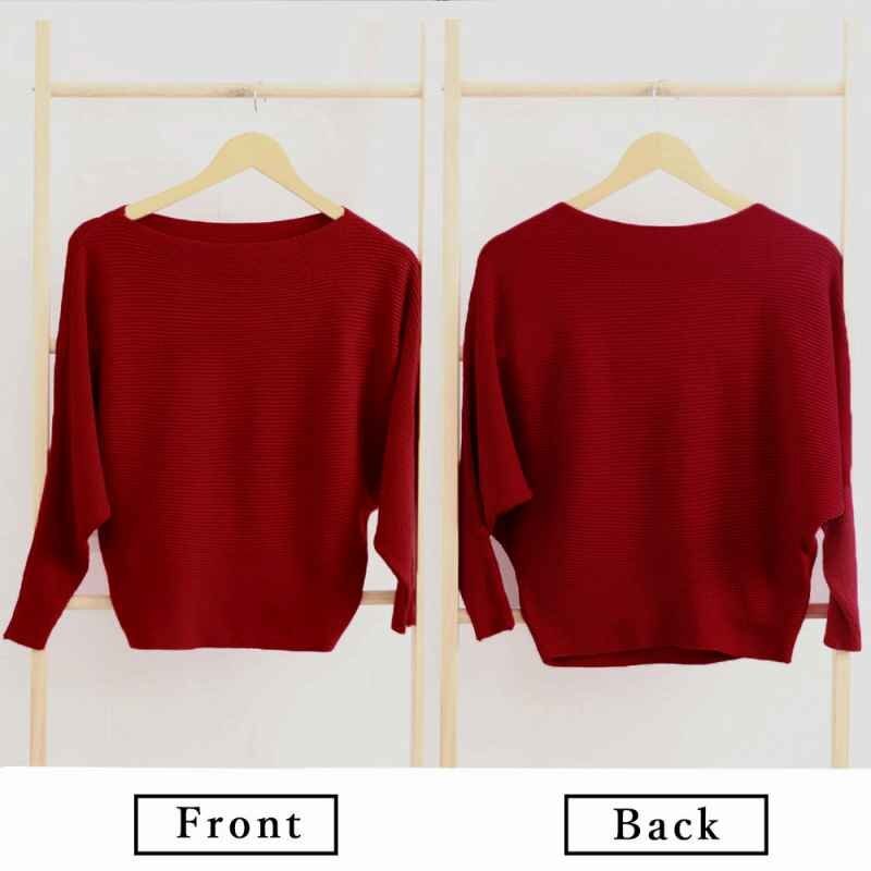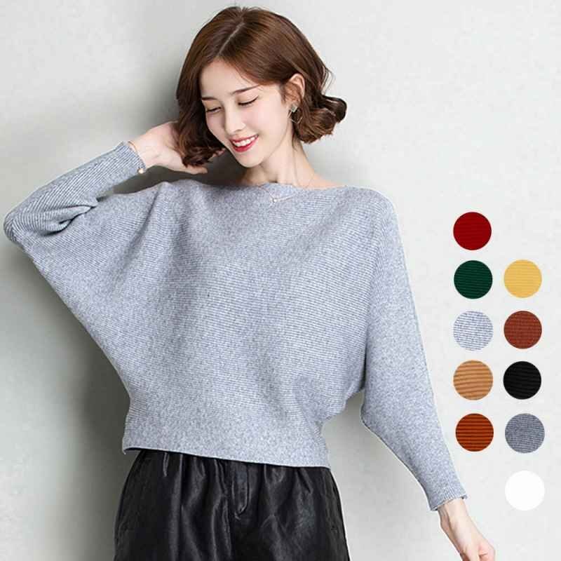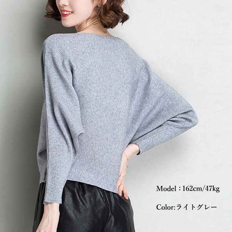 柔らかく優しい肌ざわりに仕上げたドルマンスリーブニットトップス