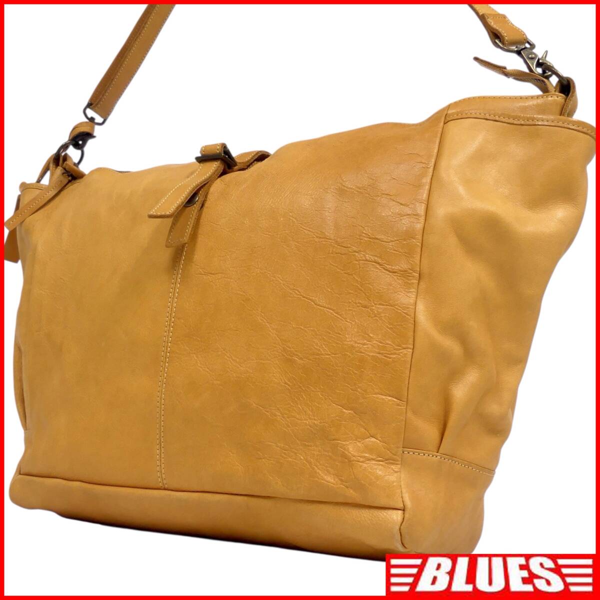 即決★N.B.★オールレザーショルダーバッグ メンズ レディース 茶 キャメル 本革 肩掛けカバン 斜め掛け 本皮