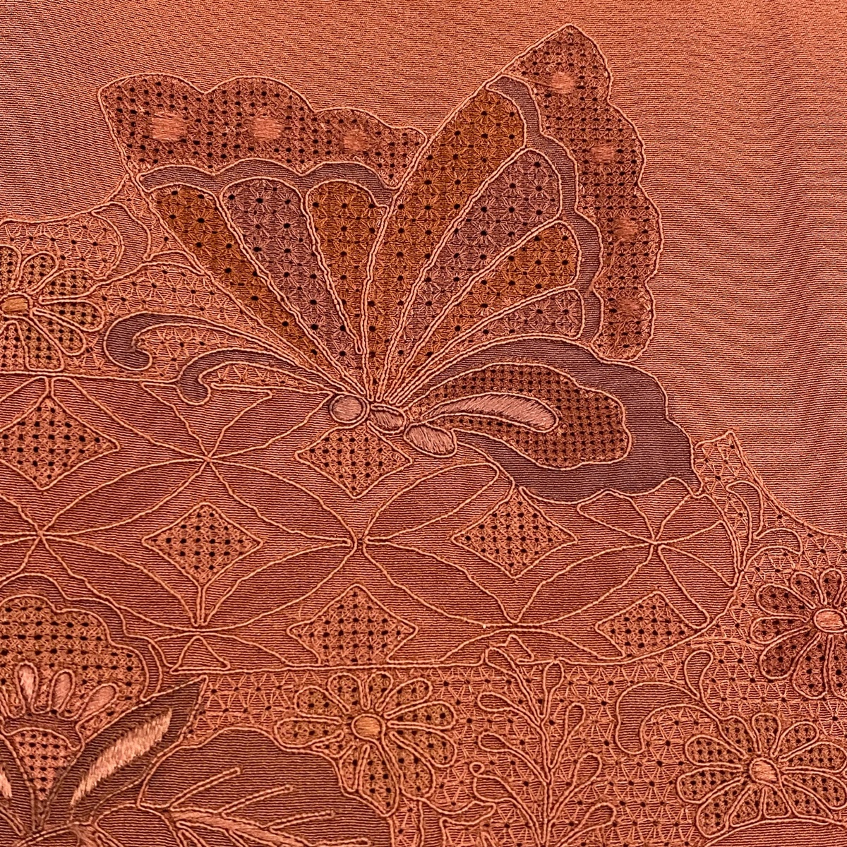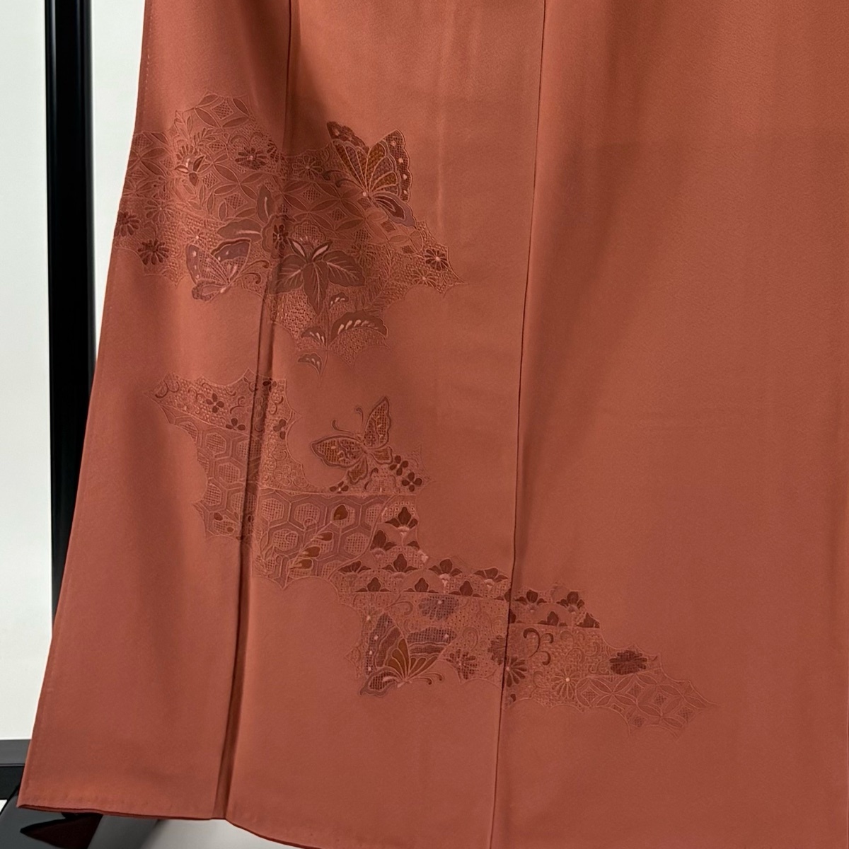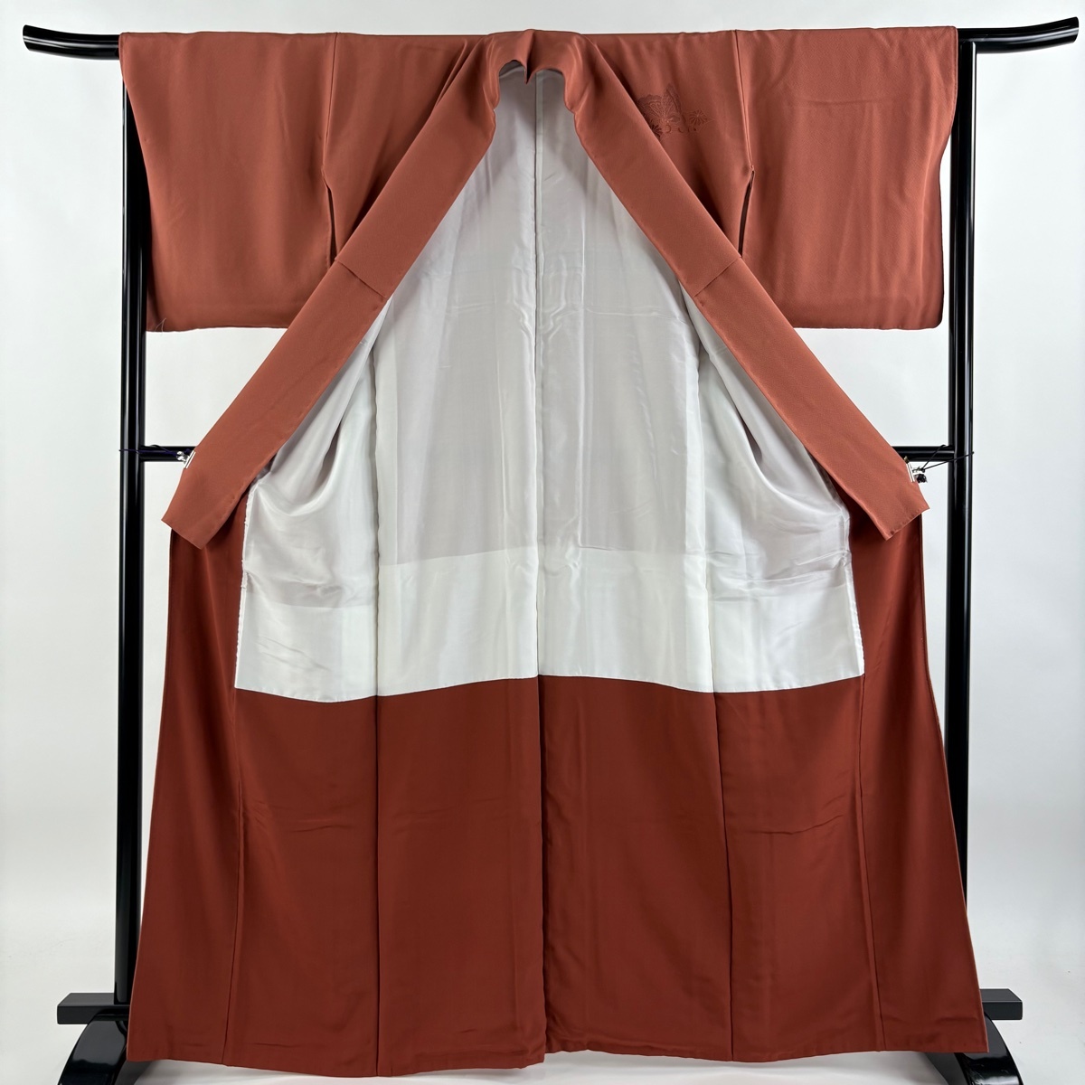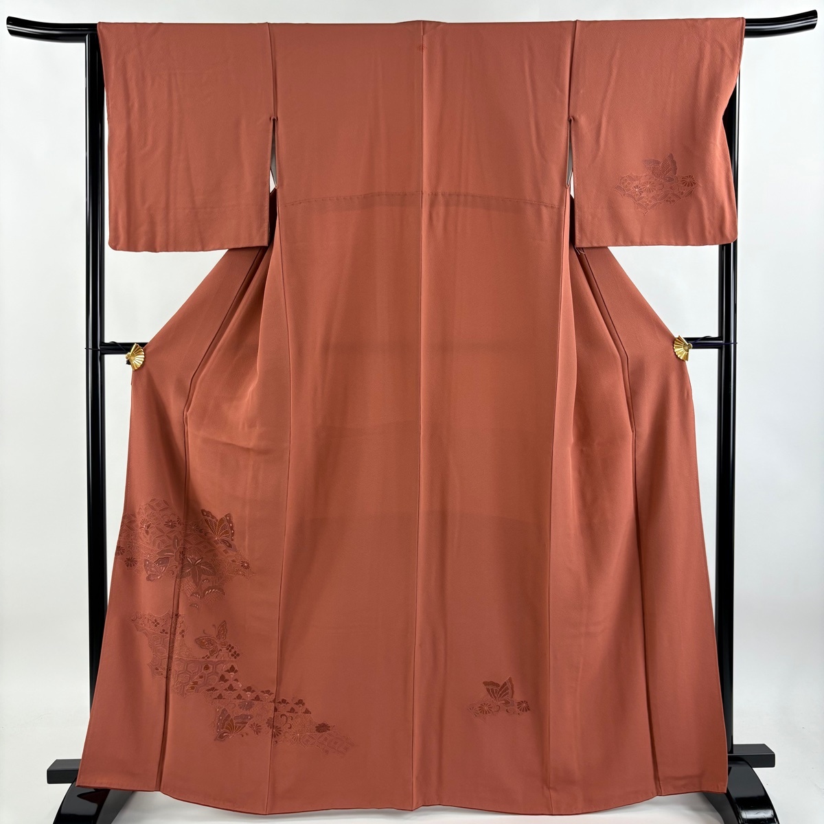 | 付下げ 美品 秀品 蝶 有職文様 刺繍 赤茶 袷 身丈165 裄丈65 M 正絹 【中古】 |