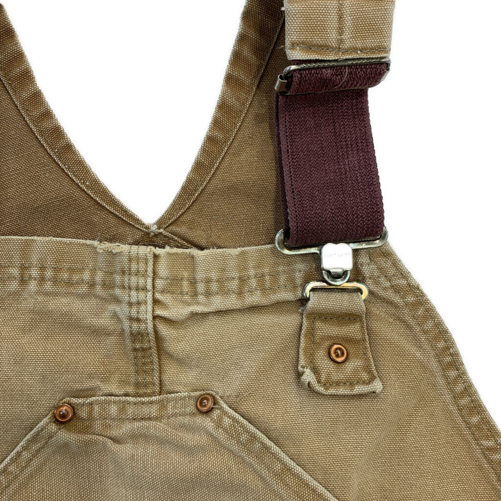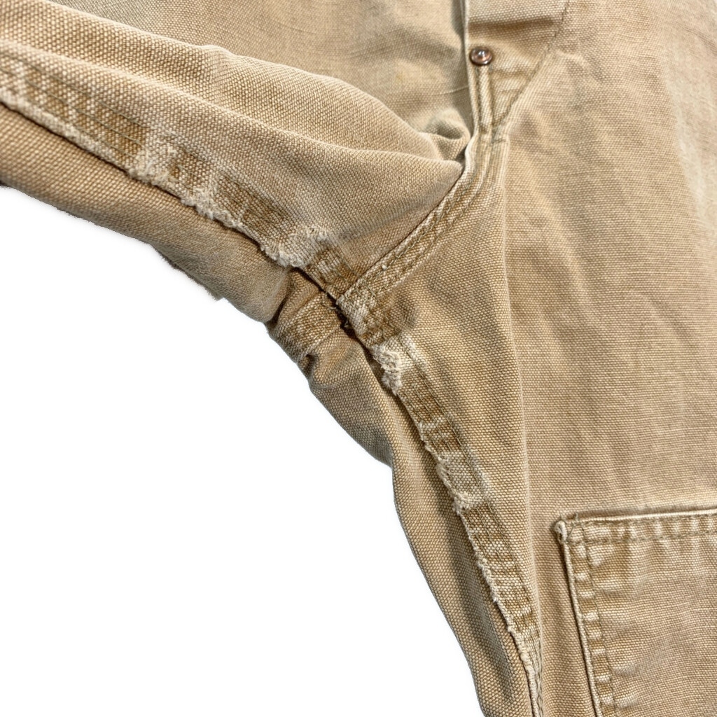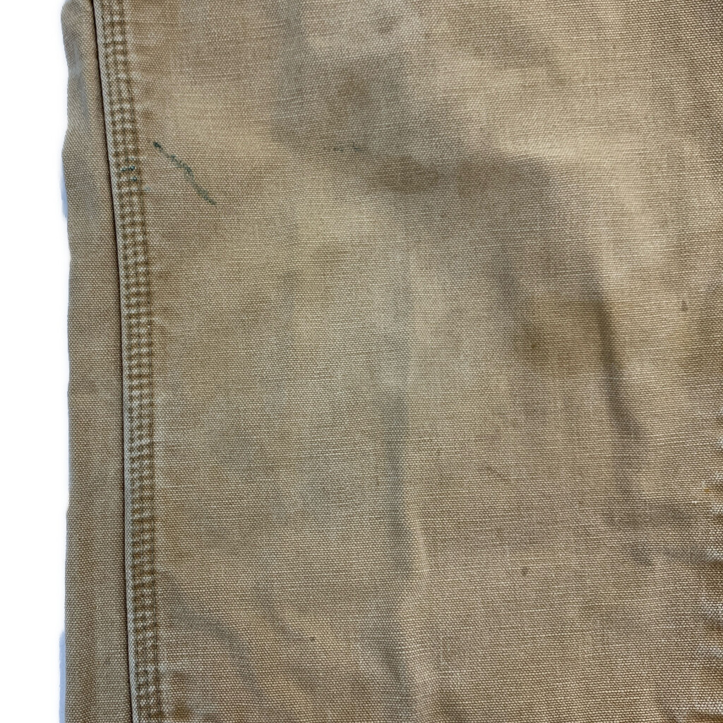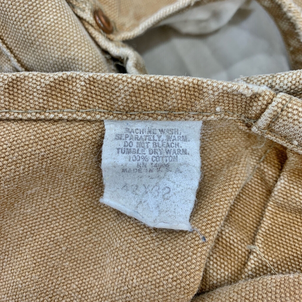 【商品管理番号】 T0321 【ブランド】 Carhartt/カーハート 【サイズ】 W40 L30相当 【実寸サイズ】 総丈:約136cm ウエスト:約102cm 股下:約74cm わたり幅:約38cm 裾幅:約25cm 【主な素材】 表地 : コットン 【色】 ブラウン 【仕様】 生産国 : USA製 70年代 大きいサイズ 山ポケット ダック ダブルニー ビブオーバーオール 【状態】 汚れ:裾、ひざ、スネ、ふくらはぎ、ポケット内 キズ:裾、股 破れ:股、もも 特記事項:色褪せ |