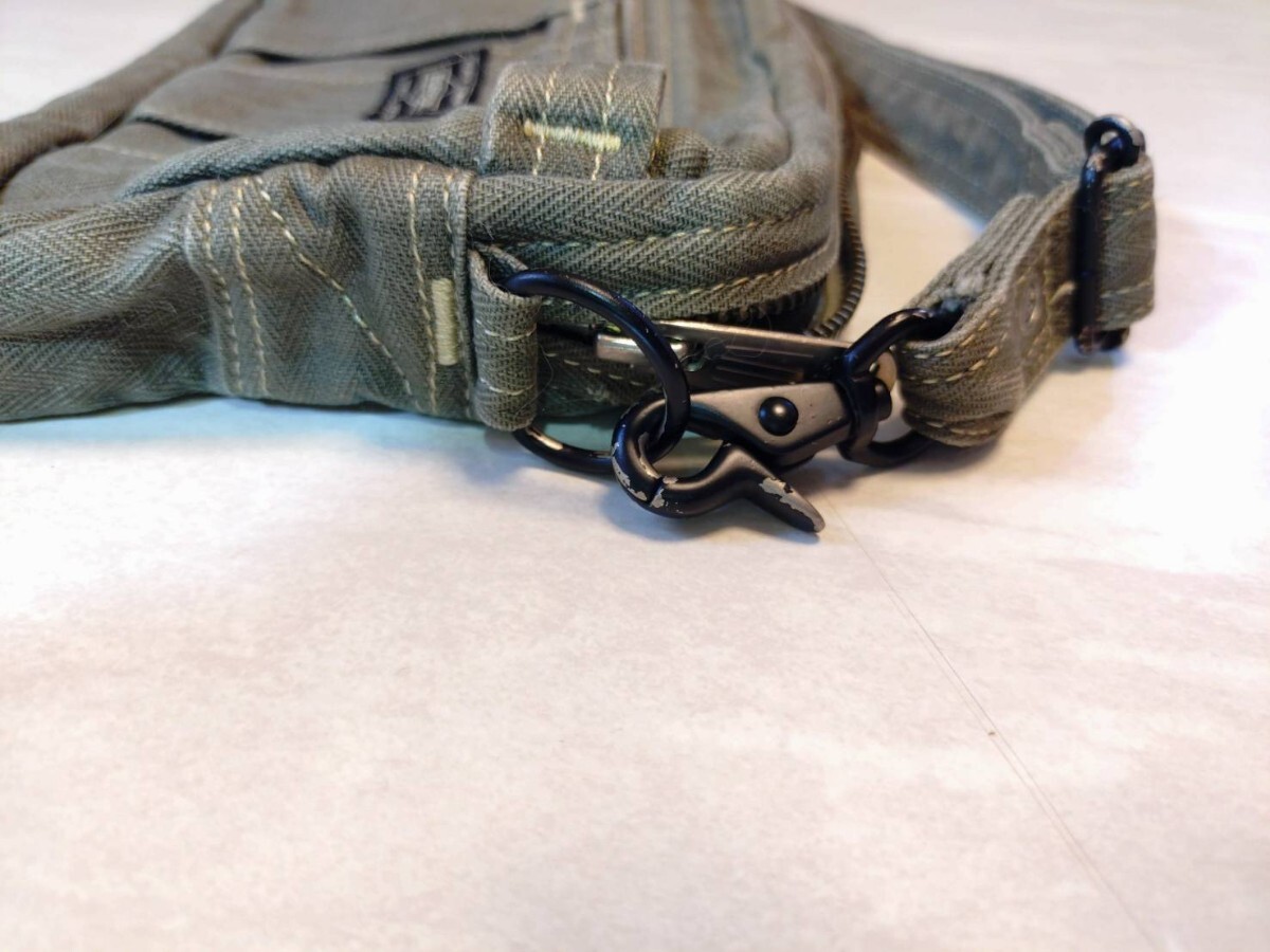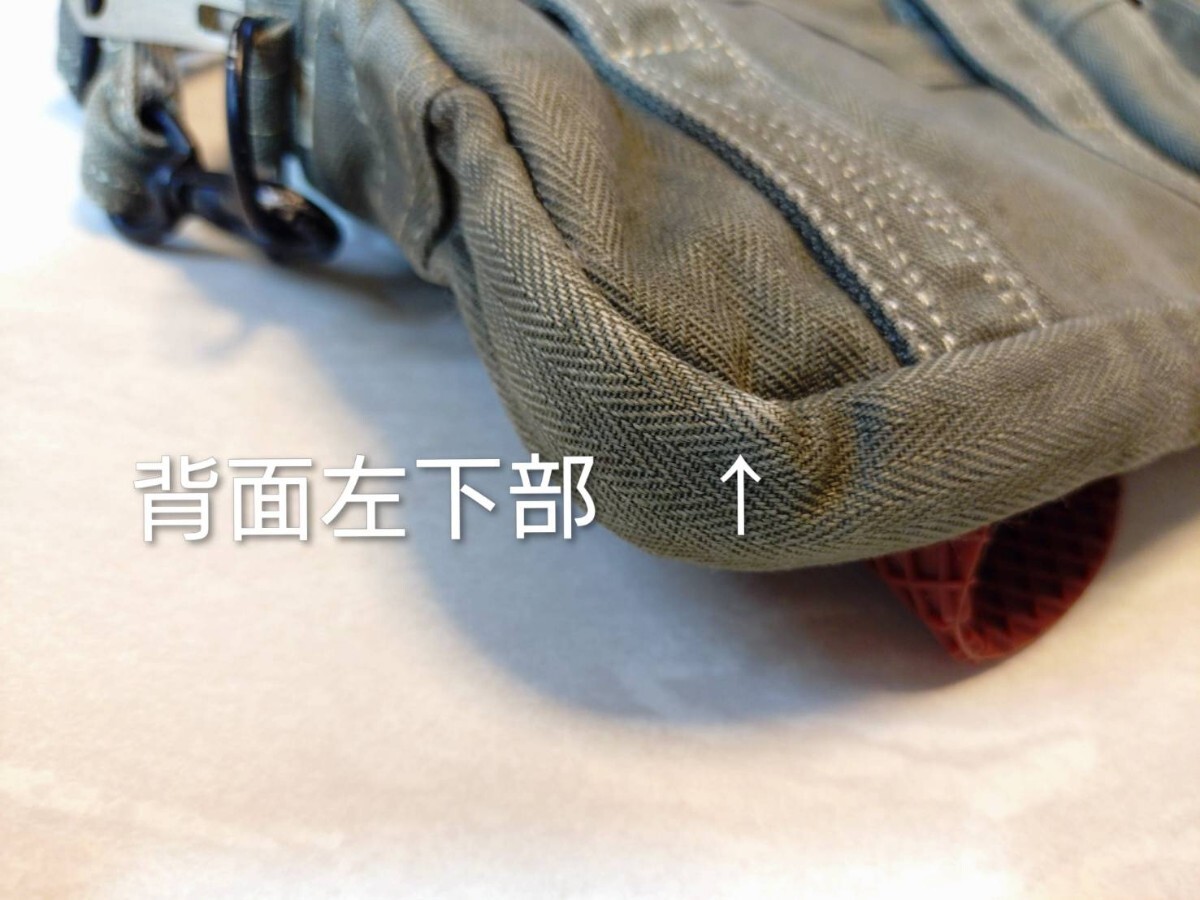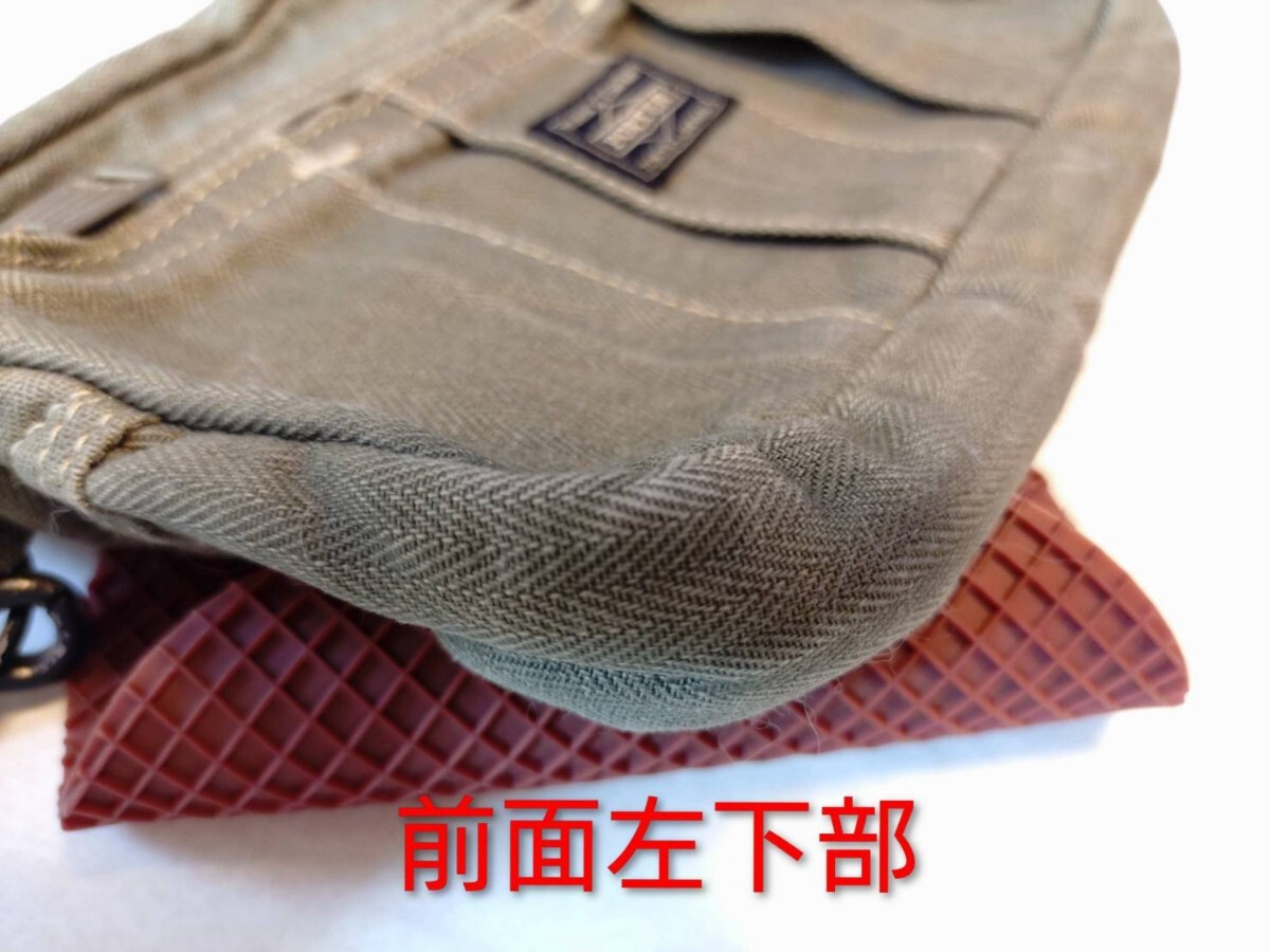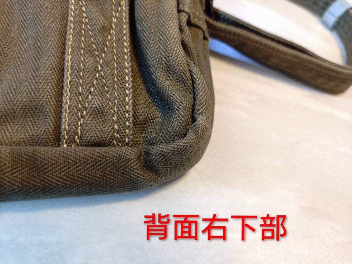 ショルダー金具部分塗装落ち、角部分に色落ちがあります。