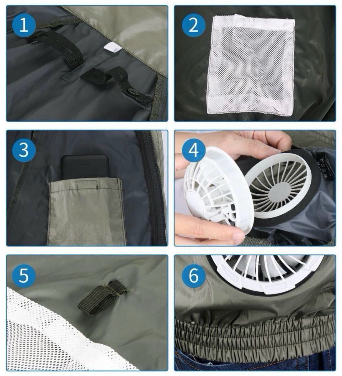 猛暑対策の決定版!作業服、ファン2個、10000mAhの大容量バッテリー、接続ケーブル一式が揃ったお得なフルセット。9枚羽根ファンが外気を素早く取り込み、3D冷却循環で体全体をクールダウン。最大7000r/minの強力風力で快適さが格段にアップ!風量は3段階調整でき、最大20時間連続使用可能。UVカット率は約95%で、紫外線対策もバッチリ。反射テープ付きで夜間の安全性も確保。薄手で軽量な素材は通気性抜群、作業からアウトドアまで幅広く活躍します。バッテリー・ファン・ケーブルを外せば洗濯機で丸洗い可能。暑い季節の頼れる一着です!