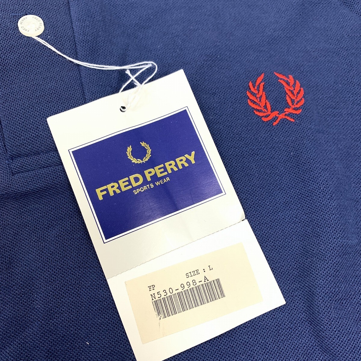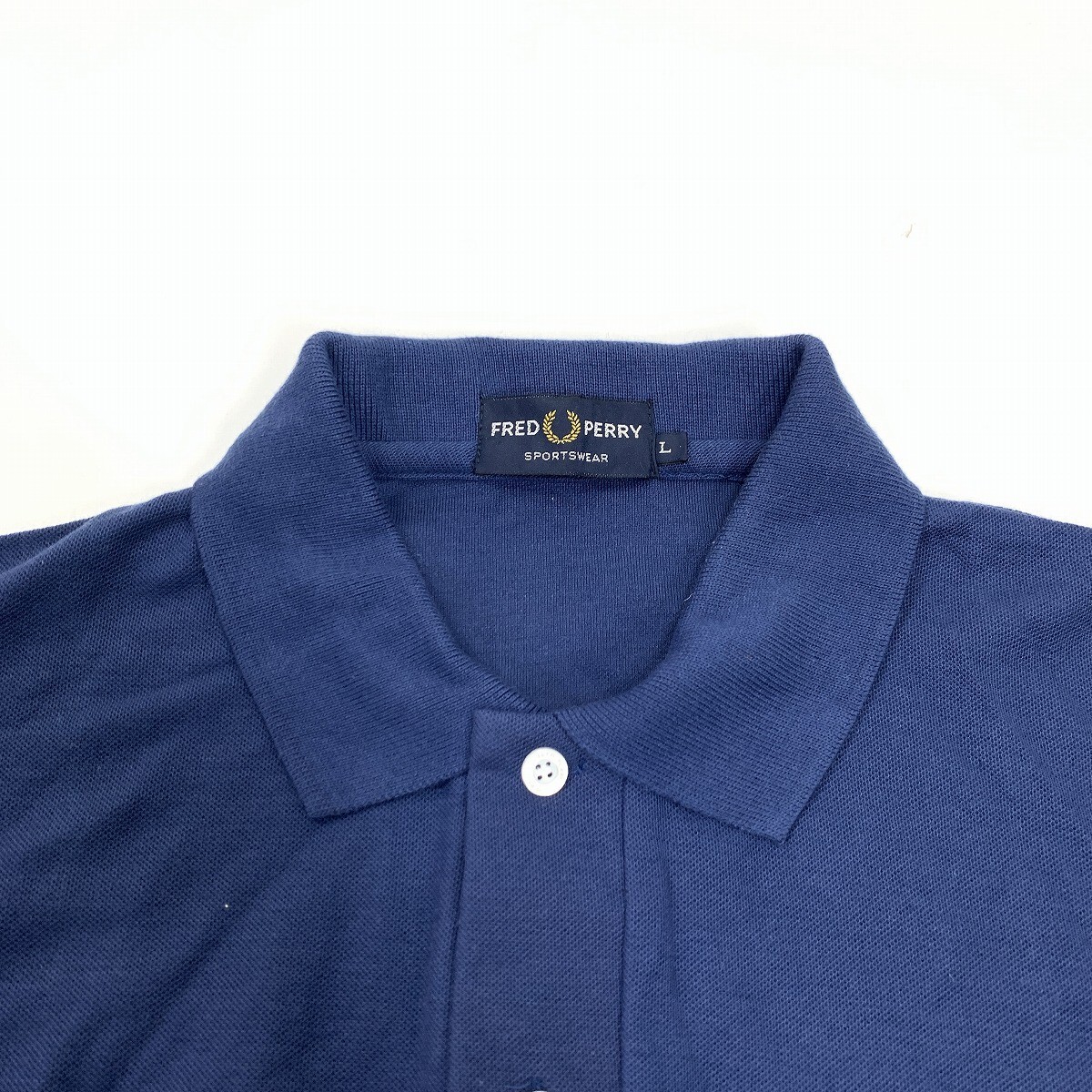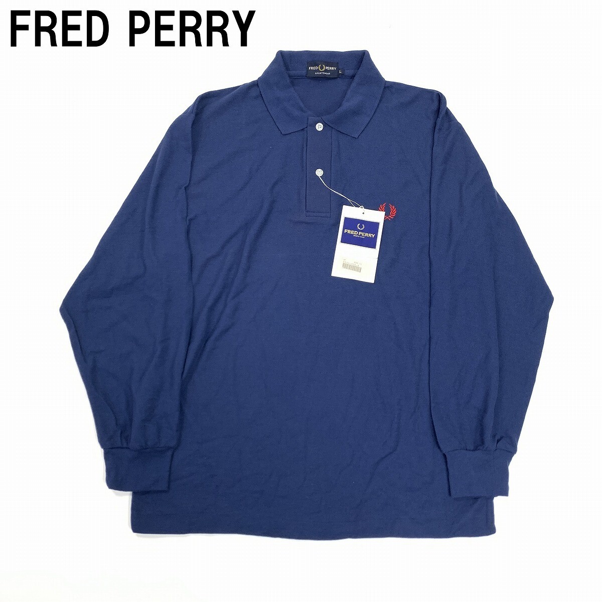 新品タグ付き FRED PERRY フレッドペリー 長袖ポロシャツ ワンポイント刺 紺 コットン ネイビー L YC1091