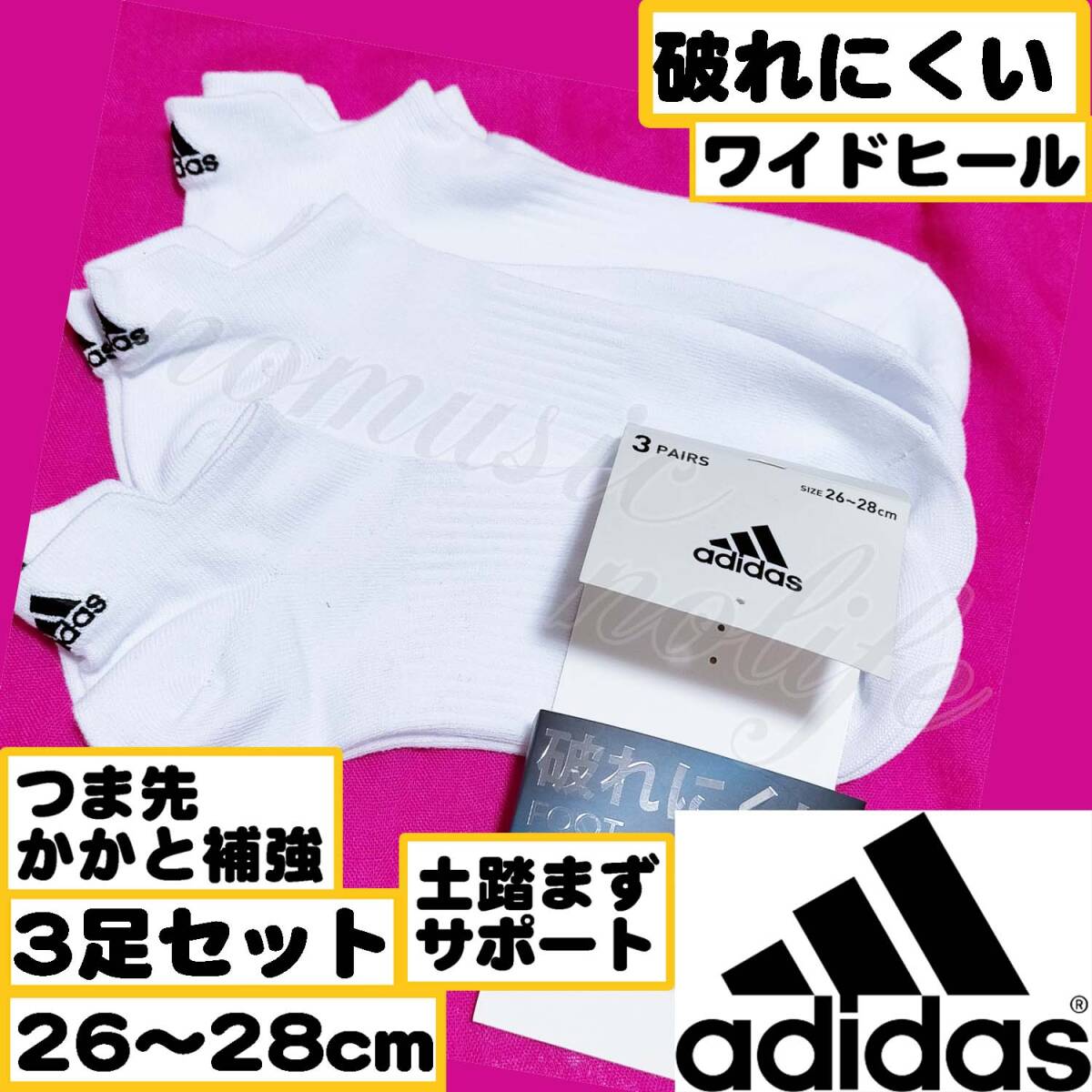 【メンズadidas】破れにくい 土踏まずサポート つま先かかと補強 ソックス 靴下 3足セット ロゴ 26~28cm【アンクH】