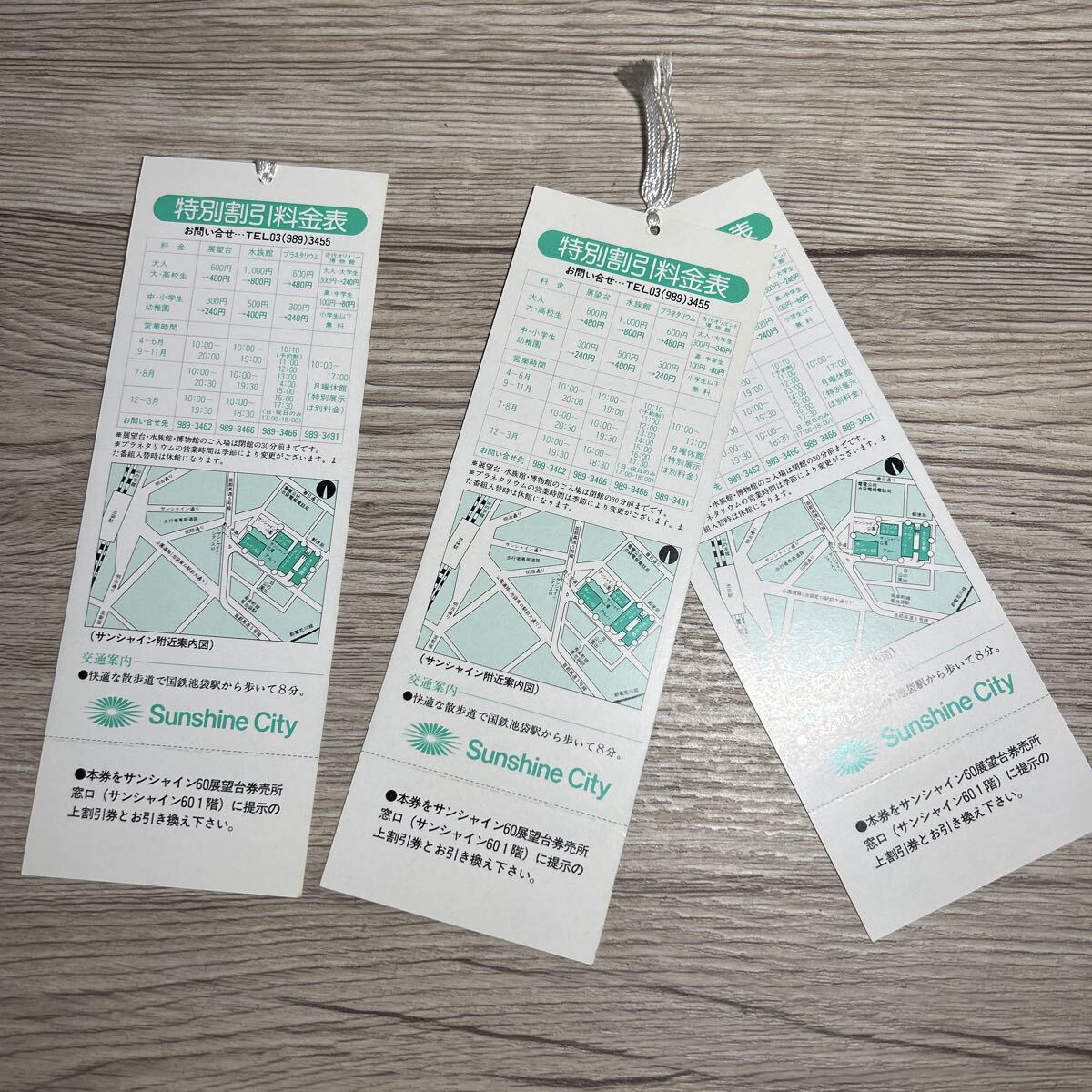 いい日旅立ち サンシャイン シティ 割引引き換え券 3枚 ※今は使えません