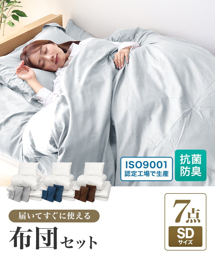 届いてすぐ使える寝具6点+収納ケースの7点セットです。 中綿には抗菌・防臭効果のある衛生的な中空ポリエステル綿を使用! 耐摩擦・耐久性に優れ、ホコリが出にくく睡眠の妨げとなるムズムズ感を軽減します。 アレルギーのある方や敏感肌の方におすすめです♪ 底付き感を感じないボリュームで、快適な寝心地とふんわり優しく包みこまれる気持ちよさを実現! また、抗菌防臭加工が施されており、いつでも清潔に使えます。 \すぐ使えるから、こんな方におススメ♪/ ・一人暮らしや新生活を始める方 ・新生活を始める方 ・来客者用の布団一式を考える方 ・布団、寝具の買い替えを考える方 ・社員寮など業務用として考える方 【商品内容】 掛け布団、敷き布団、まくら、掛け布団カバー、敷き布団カバー、まくらカバー、収納ケース 【商品詳細】 カラー:グレー サイズ:セミダブル(詳細画像参照) 素材:ポリエステル (寝具セット ふとんセット カバーセット ふとんカバー 布団 おしゃれ 人気 おすすめ WEIMALL) |