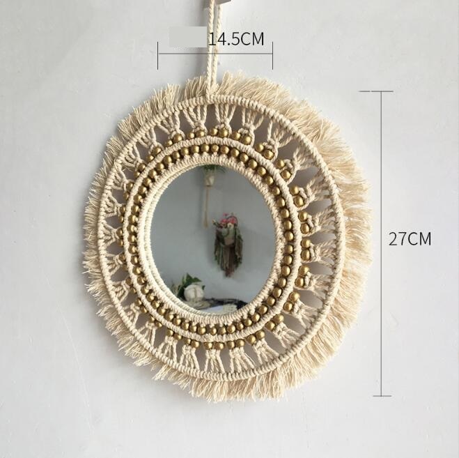 素材 綿ロープ + ガラスサイズ 直径 27 センチメートル ミラー 14.5 センチメートル