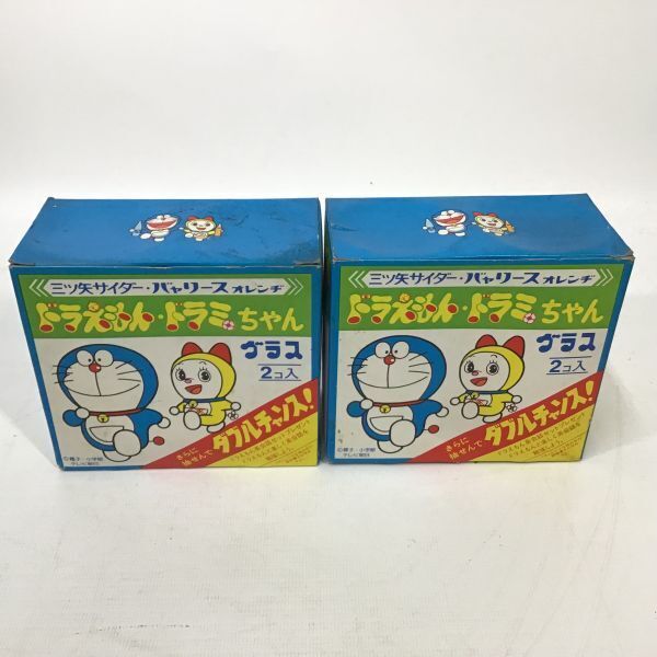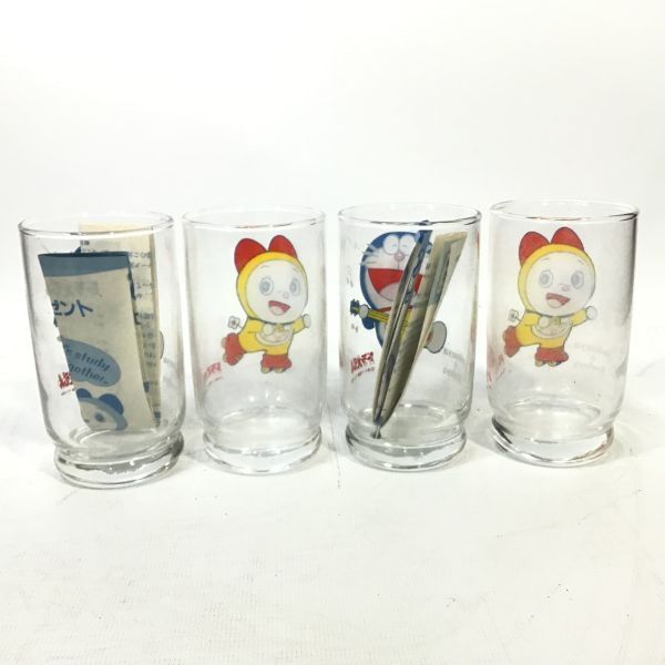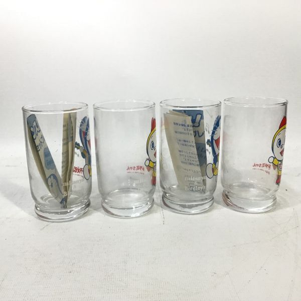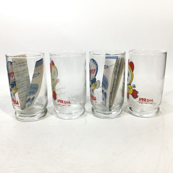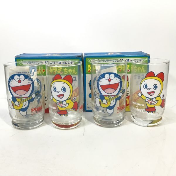 ■未使用品 昭和レトロ 当時物 ドラえもん ドラミちゃん グラス 4個 三ツ矢サイダー バヤリースオレンヂ アサヒビール
