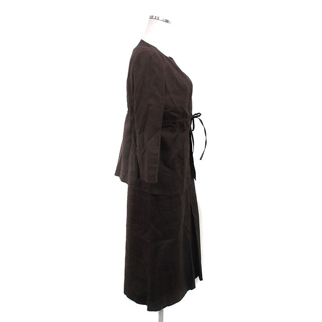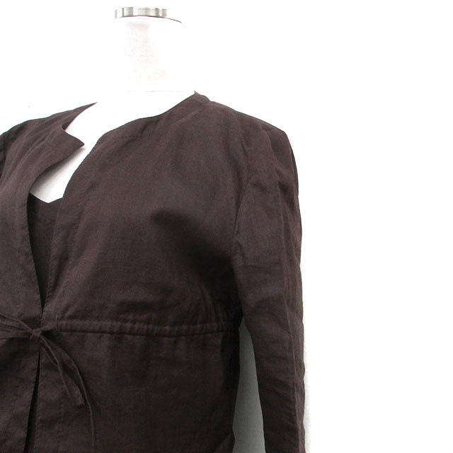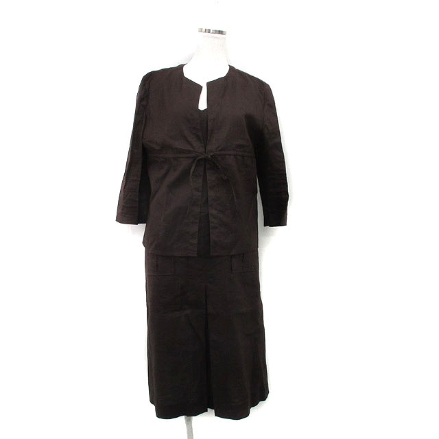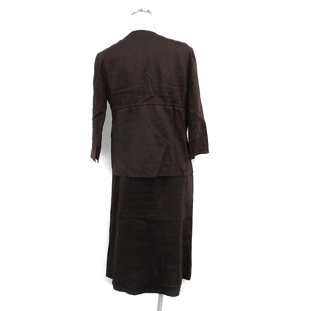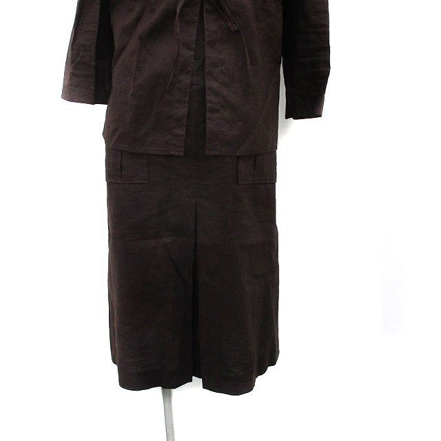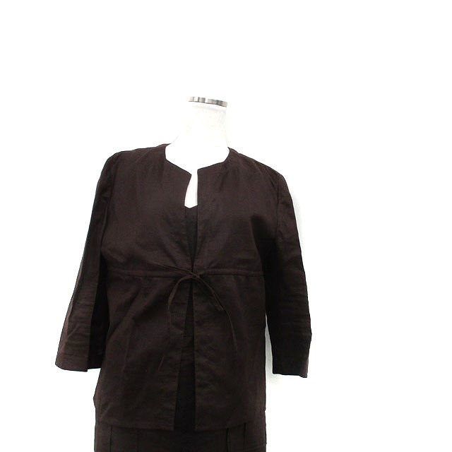 トラサルディ TRUSSARDI 3点セット ワンピース ノースリーブ ノーカラージャケット タイトスカート ロング リネン 44 ブラウン 茶 /KT35 レディース