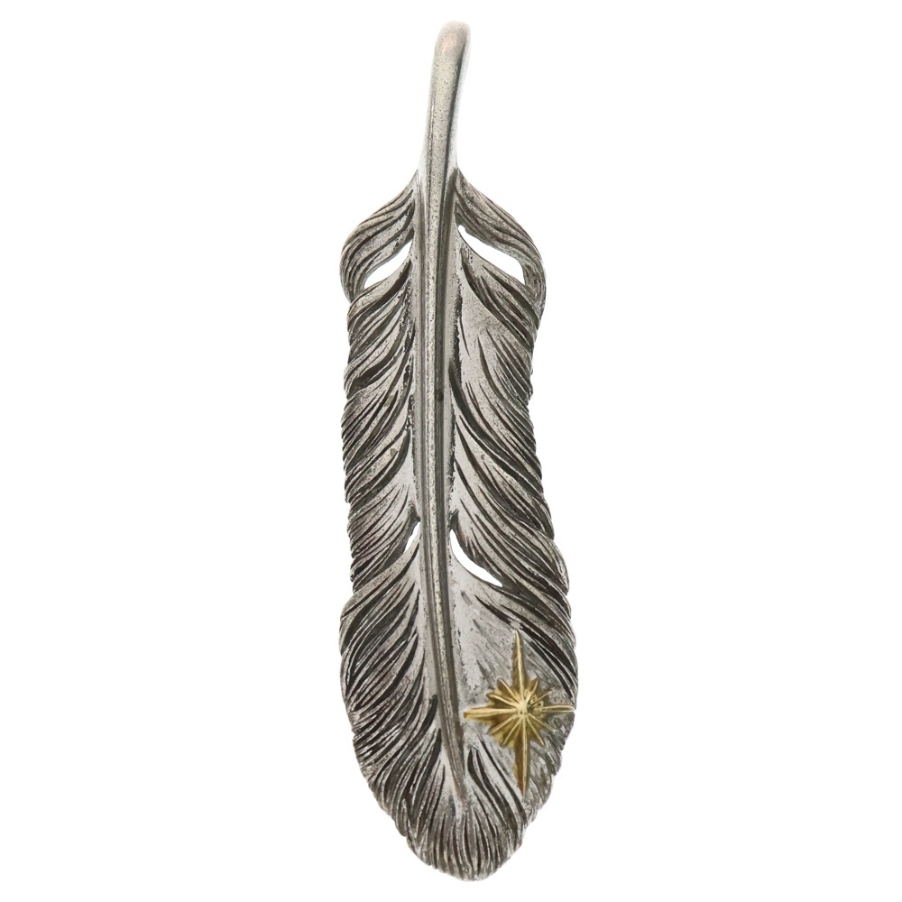 品名K18 サンシンボル付 特大フェザー ペンダントトップ シルバー/ゴールド