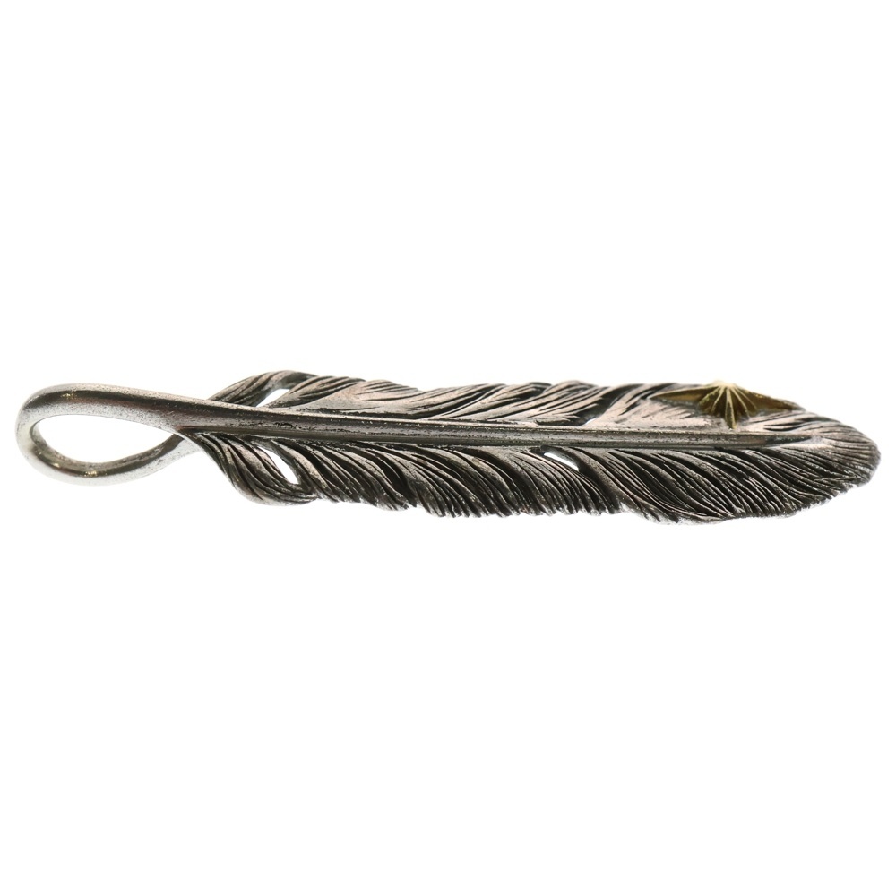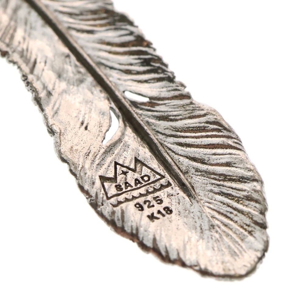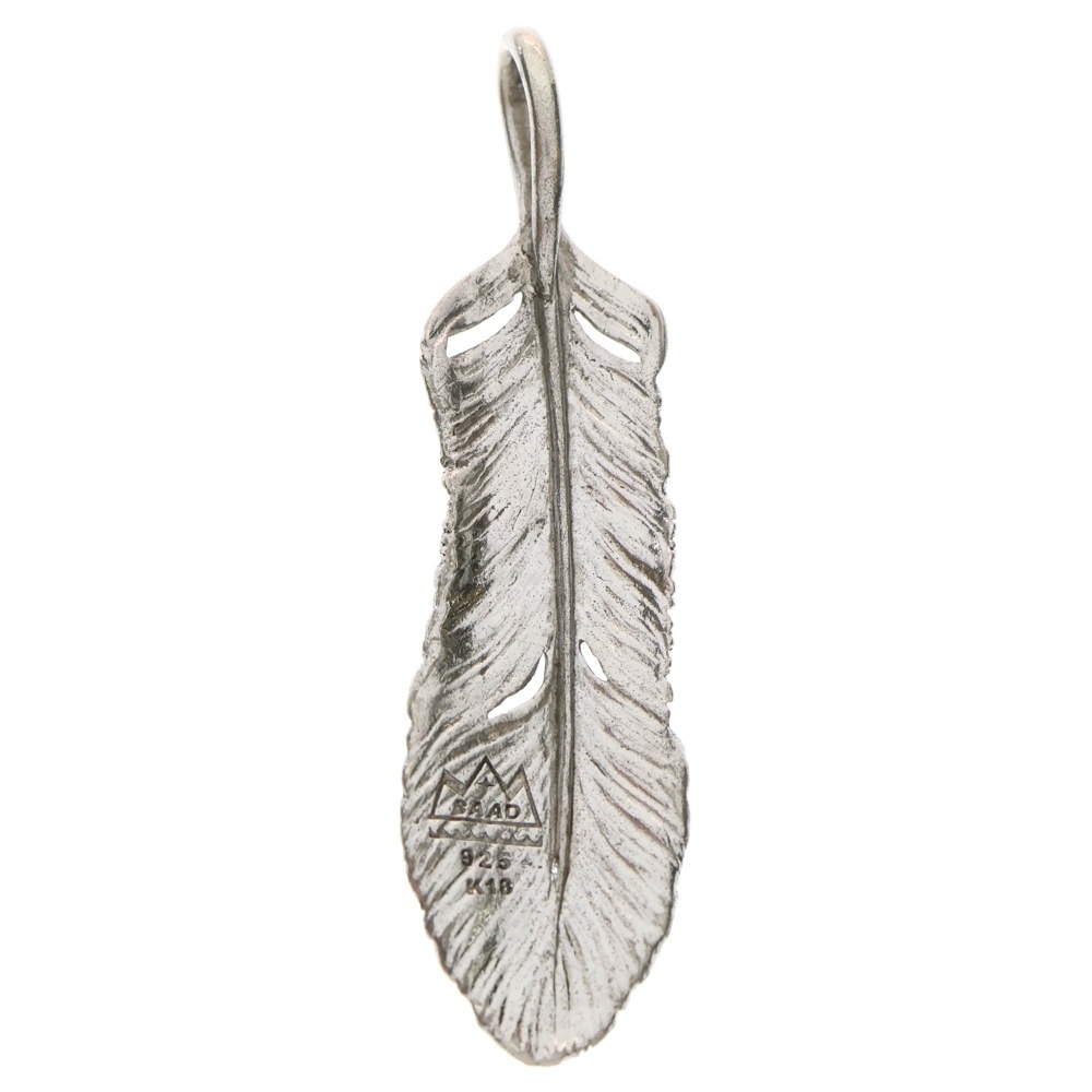 SAAD サード K18 サンシンボル付 特大フェザー ペンダントトップ シルバー/ゴールド
