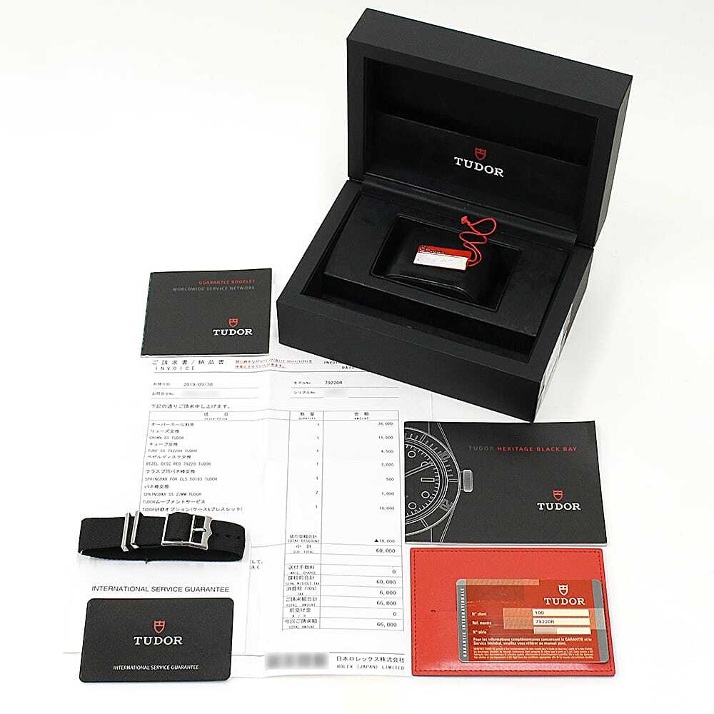 | 付属品 | 内箱(ダメージ有) / 取扱説明書 / 保証書(発行日付 2013年1月) / メーカー修理明細書(修理日 2019年12月 オーバーホール) / メンテナンス保証書(発行日付 2019年12月) /替ベルト(ファブリック) |