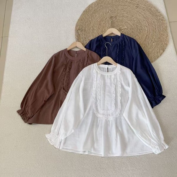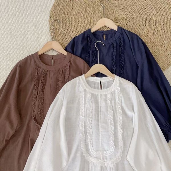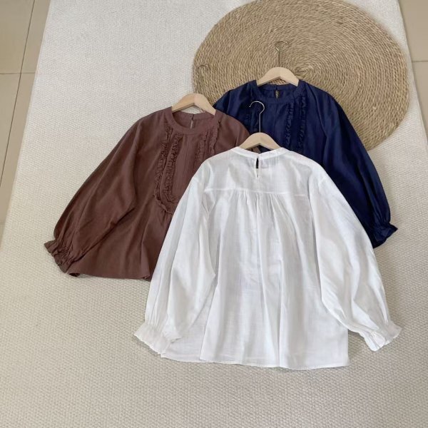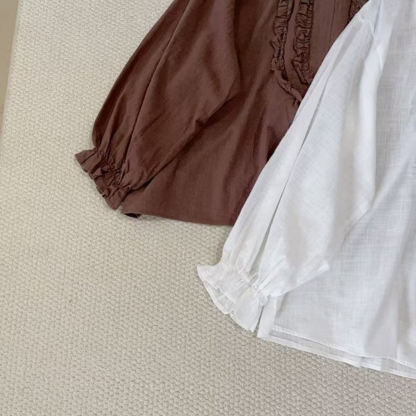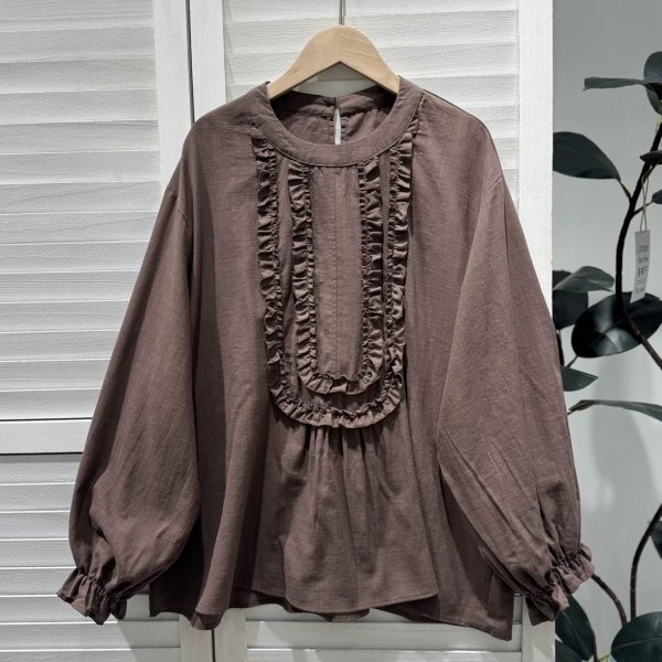 jn 2509 チュニック トップス ワイシャツ 綿100% ゆったり フリーサイズ ナチュラル ギャザー 茶色系