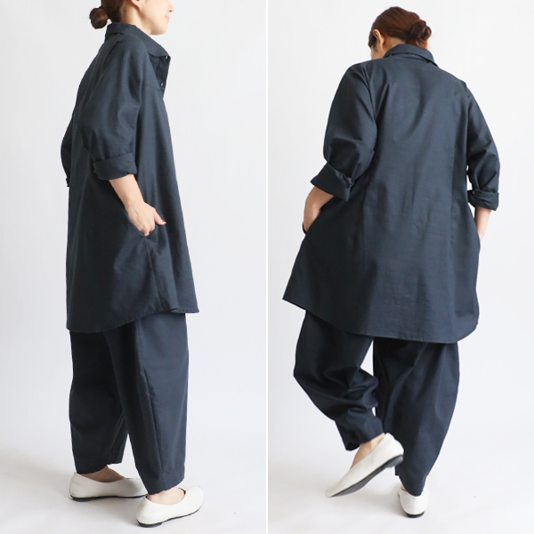 ゆったりとした着心地ながらもシルエットはスッキリと見えます。