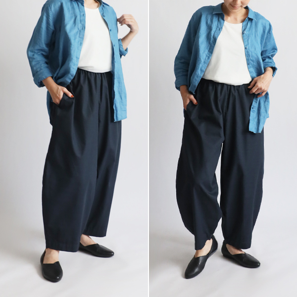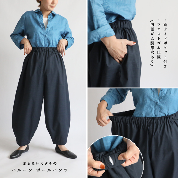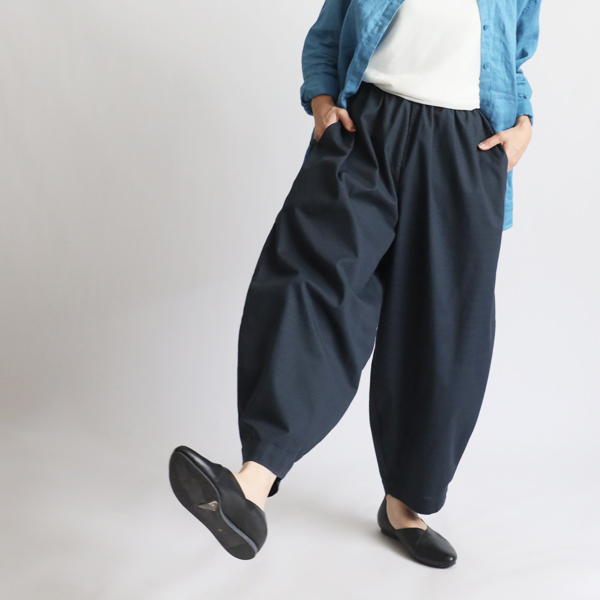 ふんわりとした丸いシルエットが特徴のパンツ。