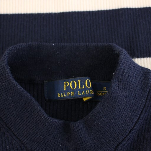 ポロ ラルフローレン POLO RALPH LAUREN ニット セーター カットソー 長袖 ボーダー柄 リブ編み S 紺 白 211541115001 レディース